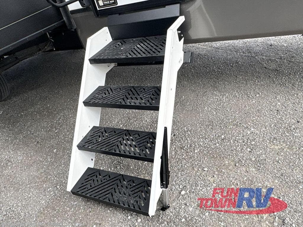 The Sprinter fifth wheels by Keystone feature spacious living areas, plenty of storage, and outstanding towability. Each unit is constructed with 2" aluminum framed and laminated sidewalls, a fully walkable roof, and dual layer insulation to help extend your camping season. The heated pass-through storage includes lockable slam latch baggage doors so you can easily pack your gear, and the one-touch 4-point leveling system features return hookup memory to have you set up in no-time. Head inside to find Congoleum vinyl flooring, Thomas Payne luxury collection furniture, residential style seamless marbled countertops, and an upgraded bedspread to name a few comforts. The Sprinter also includes a Girard tankless on-demand water heater, a central command center, plus a 30k BTU furnace and two A/C units to ensure your comfort!