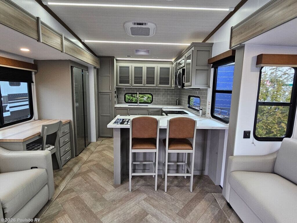 Keystone Sprinter 3840LRK offers a spacious and comfortable living area designed for an exceptional RVing experience. This new model stretches over 42 feet in length, providing ample room for up to four people to relax and sleep comfortably. Its three slide outs significantly expand the interior space, creating a roomy environment perfect for spending quality time indoors. Designed with a focus on convenience and ease, this RV includes features such as leveling jacks which ensure a stable setup wherever you go, and a single awning to enjoy outdoor shade during sunny days. Inside, you will find a well-thought-out floorplan that enhances flexibility and comfort for your travel lifestyle. The sizable living area invites you to unwind after a day of adventure, making every moment inside enjoyable and cozy. This Sprinter model is built to support long trips or weekend getaways with a dry weight that balances stability and towing ease along with a hitch weight engineered for reliable connection to your vehicle. Crafted by Keystone, a trusted name in RV manufacturing, it brings quality construction and functional design to your travels. As a family-owned, award-winning local RV dealer with multiple locations in Sumner, Everett, Kent, and Mt. Vernon Washington, Poulsbo RV here to help you find the perfect RV. Stock#: S969, VIN: 4YDFSTU22T4530496.