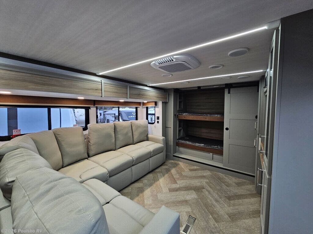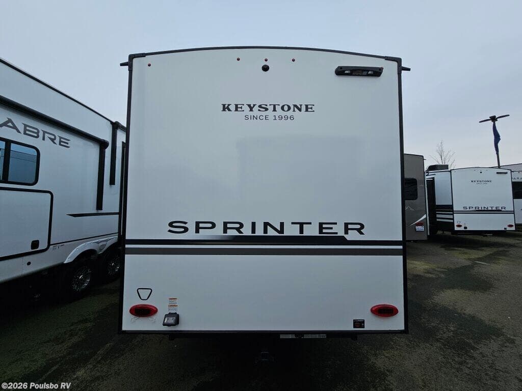 The 2026 Keystone Sprinter 3800FLB redefines spacious and comfortable living on the road. This new RV stretches an impressive 43 feet long, offering generous living space that easily accommodates families and groups. Designed with a dedicated bunkhouse featuring two bunk beds, it provides flexible sleeping arrangements that make traveling with kids or guests effortless. The triple slide-outs expand the living area, creating an open and inviting environment perfect for relaxing or entertaining. This Sprinter model includes convenient leveling jacks for stability no matter the terrain, enhancing your comfort wherever your adventures take you. Inside, you will find thoughtful features aimed at making your journey enjoyable and hassle free, with a focus on maximizing usable space and practical living solutions. The Sprinter 3800FLB is built with a strong GVWR of 16,000 pounds and a dry weight of 12,775 pounds, balanced by a hitch weight of 2,745 pounds to ensure reliable towing. Whether for extended road trips or weekend escapes, this Keystone RV is crafted to deliver flexibility, comfort, and convenience all in one package. As a family owned, award winning local RV dealer with multiple locations in Sumner, Everett, Kent, and Mt Vernon Washington, Poulsbo RV here to help you find the perfect RV. Stock#: S978, VIN: 4YDFSTU25T4530525.