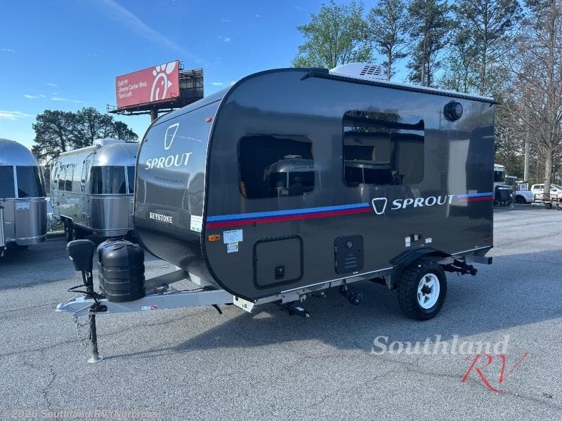 The Sprout travel trailers by Keystone are premium single-axle units that are sure to make an impression at the campground. Each one is built with .040 smooth front medal, one piece heated and enclosed underbelly, power tongue jack. There are also tinted safety glass windows, quick drop stabilizer jacks, and an exterior shower with hot and cold water. Inside, you will enjoy blackout night shades and a 78" interior height, along with an ultra-bright LED light strip and solid surface countertops in the kitchen. The 13,500 BTU A/C and 20,000 BTU furnace will keep you comfortable, and the Suburban tankless water heater is a convenience you won't want to camp without!