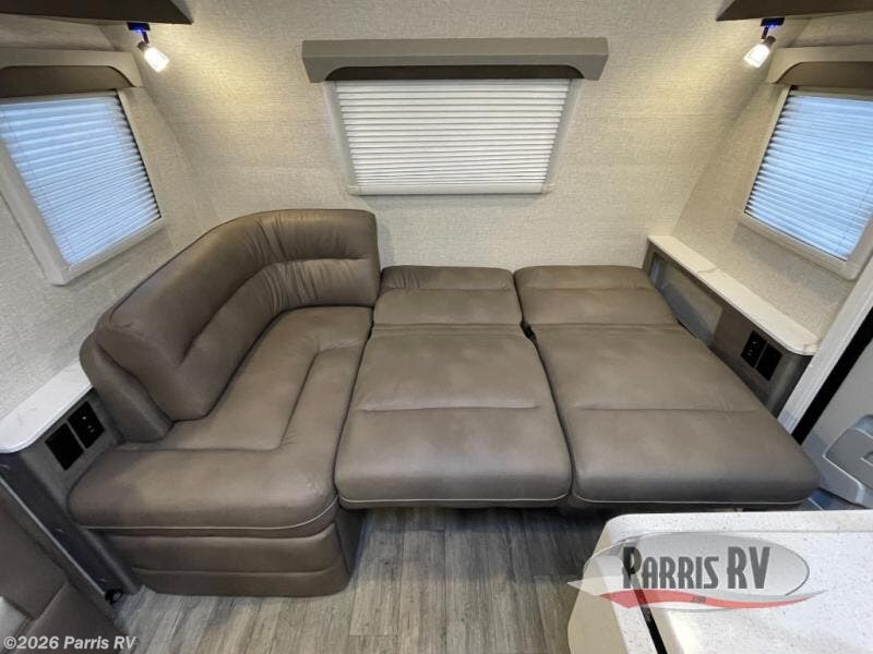 This Lance travel trailer has the best bedroom out of the entire brand! Not only do you have a private bedroom at the back of the trailer with a slide out for more walking space, but you also have a king-size bed just waiting for you to enjoy its comfort. Another comfortable feature found on this trailer is the front sofa bed. Added to the booth dinette and king-size bed, this sofa helps this trailer sleep five people during every getaway.