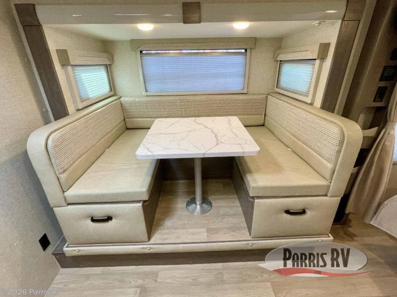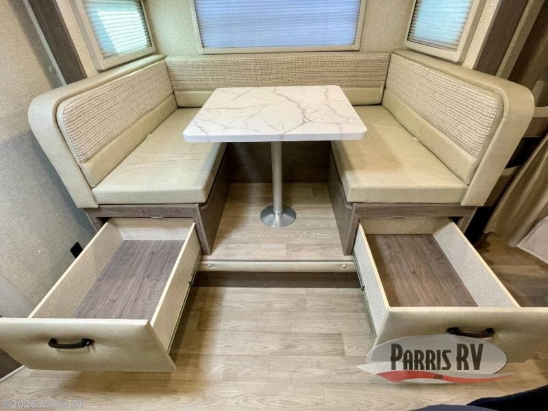 The main difference between this Lance travel trailer and model 1985 is that this unit offers you more storage space in the back in place of the full rear bath! The bathroom has a dual-pane skylight to let in natural sunlight as you get ready in the morning, and the deluxe queen pillowtop innerspring mattress with a bedspread and two LED reading lights is at the other end of the trailer. This bed can be sectioned off by drawing the privacy curtain, and the U-shaped dinette will provide sleeping accommodations for two more people. If you prefer, you can even change out the bed for the optional convertible sofa bed. Each person will benefit from a hot meal prepared in the kitchen on the stainless steel three-burner range!