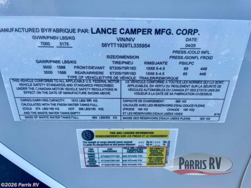 Request More Info on this 2026 Lance Lance Travel Trailers1 1995 Offered for sale by Parris RV