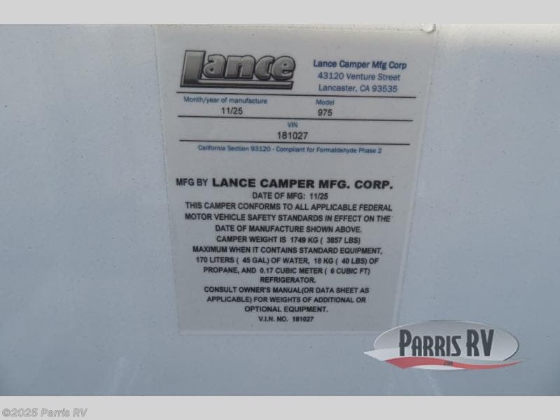 Request More Info on this 2026 Lance Lance Truck Campers 975 Offered for sale by Parris RV