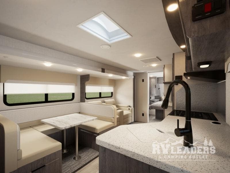 With any Squire travel trailer by Lance, you can count on high quality at an exceptional value! Each unit is built with a one-piece fully laminated roof and dual Azdel walls to extend the life of your RV. There are Slam Latch pass-through compartment doors, an exterior wash station, aluminum wheels with Goodyear radial tires, plus a manual tongue jack and manual stabilizer jacks to keep your travel trailer secure. The 12V/USB charging port(s) will keep your electronics charged up and the stereo will let you listen to your favorite tunes at the campground. Each travel trailer also includes decorative window valance boxes, solid surface countertops, and decorative backsplash to name a few interior comforts.