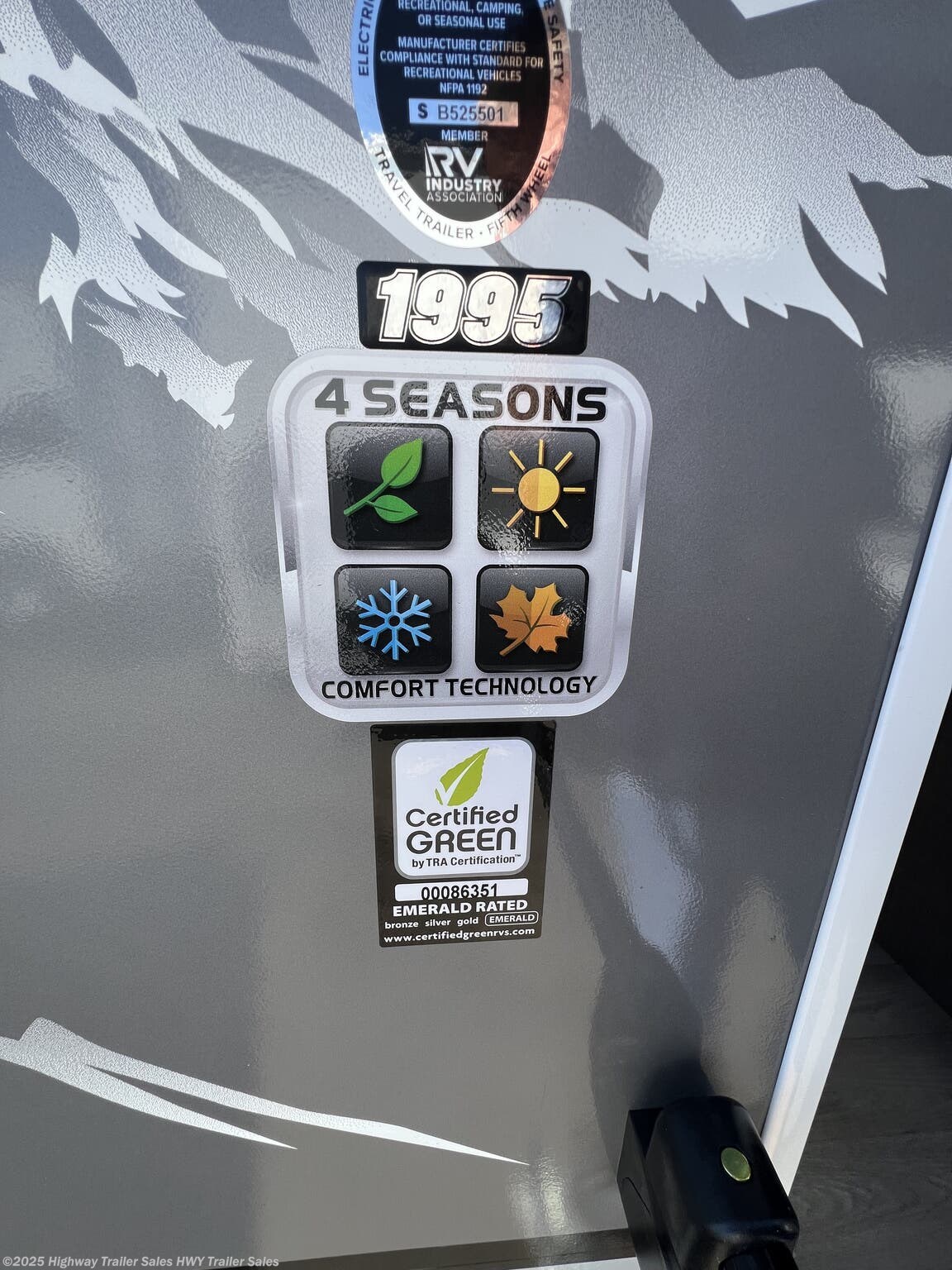 Alloy Wheels, Aluminum Entrance Steps, Backup Monitor, Black Tank Flush, Detachable Power Cord, Enclosed Underbelly, External Shower, Front Fiberglass Cap w/Window, Heated Underbelly, Ladder, Pass Thru Storage, Power Awning, Power Hitch Jack, Power Roof Vent, Power Stabilizer Jacks, Roof Vent, Screen Door, Skylight, Slam Latch Baggage Doors, Slideout, Slide-out Awning, Spare Tire Kit, Upgraded Insulation Package -