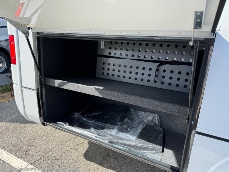 You can sleep four comfortably in this coach thanks to the 52" x 76" rear corner bed, and the dinette+, or you might want to choose the optional leisure lounge. The galley includes a stainless-steel sink, a two-burner cooktop, plus a pull-out panty and a 12V compressor refrigerator for food storage. The rear corner bath will allow you to stay clean throughout your many travels, and there is plenty of storage space for your essentials. You will also love the powered box awning with a wind sensor and LED lights for those late-night evenings outdoors with friends.