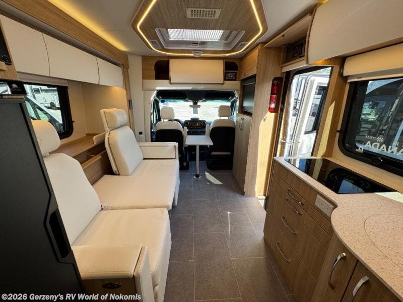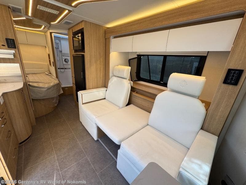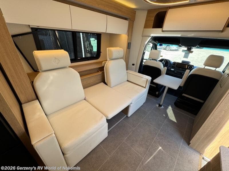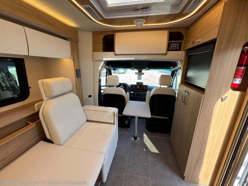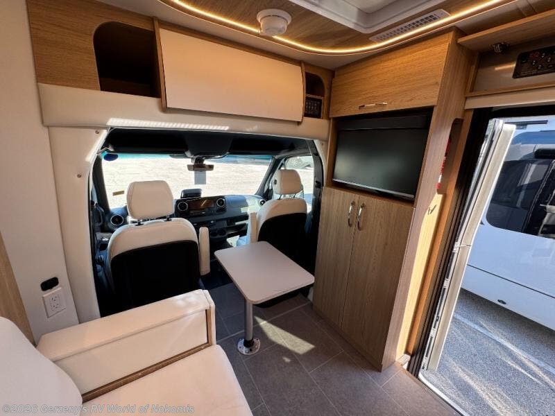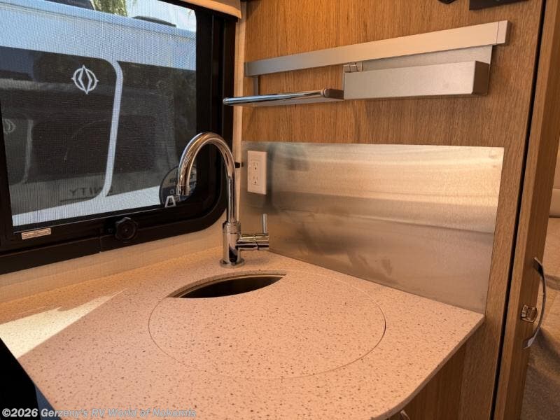 Each Unity Class B+ diesel motorhome by Leisure Travel sits on a durable Mercedes-Benz Sprinter 3500 dual rear wheel chassis with a 2.0-L Turbocharged I-4 diesel engine to power your adventures. The powder coated steel undercarriage support structure and vacuum-bonded construction provide a coach that will last for years, and there are sleek exterior paint options to make the coach your own. You'll love driving the Unity with its electronic stability control, adaptive cruise control, 9-speed automatic transmission with quieter noise levels and more comfort. The luxurious interior includes Ultrafabrics, a contoured solid surface Corian countertop in the kitchen, modern cabinetry finishes, plus many more comforts. And all of your power need will be met with 270-Ah 12V Lithium coach batteries with an internal heating system, plus a 3000W pure sine inverter and a 30 Amp power cord.