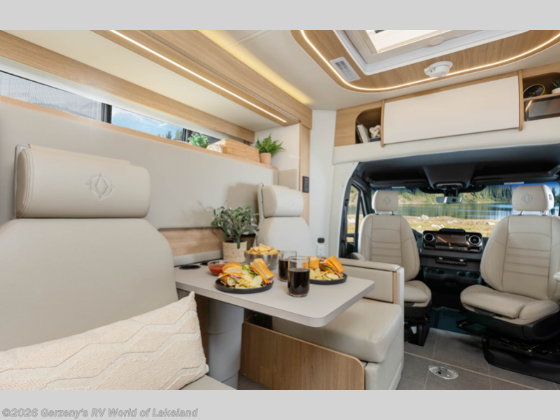 Each Unity Class B+ diesel motorhome by Leisure Travel sits on a durable Mercedes-Benz Sprinter 3500 dual rear wheel chassis with a 2.0-L Turbocharged I-4 diesel engine to power your adventures. The powder coated steel undercarriage support structure and vacuum-bonded construction provide a coach that will last for years, and there are sleek exterior paint options to make the coach your own. You'll love driving the Unity with its electronic stability control, adaptive cruise control, 9-speed automatic transmission with quieter noise levels and more comfort. The luxurious interior includes Ultrafabrics, a contoured solid surface Corian countertop in the kitchen, modern cabinetry finishes, plus many more comforts. And all of your power need will be met with 270-Ah 12V Lithium coach batteries with an internal heating system, plus a 3000W pure sine inverter and a 30 Amp power cord.