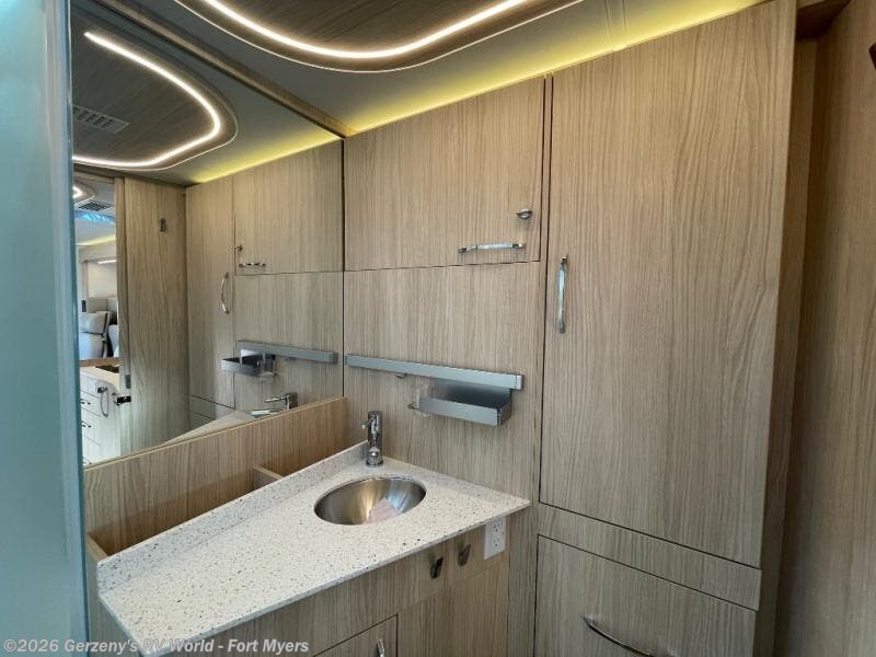 Each Unity Class B+ diesel motorhome by Leisure Travel sits on a durable Mercedes-Benz Sprinter 3500 dual rear wheel chassis with a 2.0-L Turbocharged I-4 diesel engine to power your adventures. The powder coated steel undercarriage support structure and vacuum-bonded construction provide a coach that will last for years, and there are eight sleek exterior paint options to make the coach your own. You'll love driving the Unity with its electronic stability control, adaptive cruise control, 9-speed automatic transmission with quieter noise levels and more comfort. There is even a digital mirror with sharp high-resolution that can be switched between convectional display and digital display for convenience. The luxurious interior includes Ultraleather furniture, a contoured solid surface Corian countertop in the kitchen, new decor options, plus many more comforts. And all of your power need will be met with 270-Ah, 12V Lithium coach batteries with an internal heating system, plus a 3000W pure sine inverter and a 30 Amp power cord. If you choose the optional 60th Anniversary Edition, you will enjoy the Diamond White exterior paint, diamond-quilted upholstery, Cool Ice Ultrafabrics, matte black hardware, and more elegant features that are exclusive to this package!