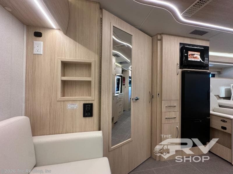 Each Unity Class B+ diesel motorhome by Leisure Travel sits on a durable Mercedes-Benz Sprinter 3500 dual rear wheel chassis with a 2.0-L Turbocharged I-4 diesel engine to power your adventures. The powder coated steel undercarriage support structure and vacuum-bonded construction provide a coach that will last for years, and there are eight sleek exterior paint options to make the coach your own. You'll love driving the Unity with its electronic stability control, adaptive cruise control, 9-speed automatic transmission with quieter noise levels and more comfort. There is even a digital mirror with sharp high-resolution that can be switched between convectional display and digital display for convenience. The luxurious interior includes Ultraleather furniture, a contoured solid surface Corian countertop in the kitchen, new decor options, plus many more comforts. And all of your power need will be met with 270-Ah, 12V Lithium coach batteries with an internal heating system, plus a 3000W pure sine inverter and a 30 Amp power cord. If you choose the optional 60th Anniversary Edition, you will enjoy the Diamond White exterior paint, diamond-quilted upholstery, Cool Ice Ultrafabrics, matte black hardware, and more elegant features that are exclusive to this package!