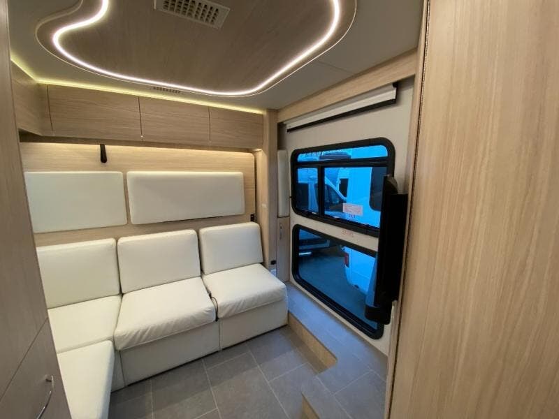 Each Unity Class B+ diesel motorhome by Leisure Travel sits on a durable Mercedes-Benz Sprinter 3500 dual rear wheel chassis with a 2.0-L Turbocharged I-4 diesel engine to power your adventures. The powder coated steel undercarriage support structure and vacuum-bonded construction provide a coach that will last for years, and there are eight sleek exterior paint options to make the coach your own. You'll love driving the Unity with its electronic stability control, adaptive cruise control, 9-speed automatic transmission with quieter noise levels and more comfort. There is even a digital mirror with sharp high-resolution that can be switched between convectional display and digital display for convenience. The luxurious interior includes Ultraleather furniture, a contoured solid surface Corian countertop in the kitchen, new decor options, plus many more comforts. And all of your power need will be met with 270-Ah, 12V Lithium coach batteries with an internal heating system, plus a 3000W pure sine inverter and a 30 Amp power cord. If you choose the optional 60th Anniversary Edition, you will enjoy the Diamond White exterior paint, diamond-quilted upholstery, Cool Ice Ultrafabrics, matte black hardware, and more elegant features that are exclusive to this package!