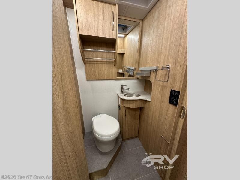 Comfortable and versatile features allow you to travel the way you like in this Unity Class B+ diesel motorhome. You have plenty of choices on how you want to sleep and how you would like to dine. Each night, you can sleep separately from your spouse on one of the two twin-size beds or convert the twins into one king-size bed for more space together. Even the bathroom area is multi-functional because of its separate lavatory from the enclosed shower, and the adjustable front seating area is handy for dining, sleeping, or playing a card game with the family. The flush-mount LP cooktop makes it easy to make your delicious meals, and if you have any leftovers, then you can store them inside the 12V compressor refrigerator with a bottom freezer drawer.
