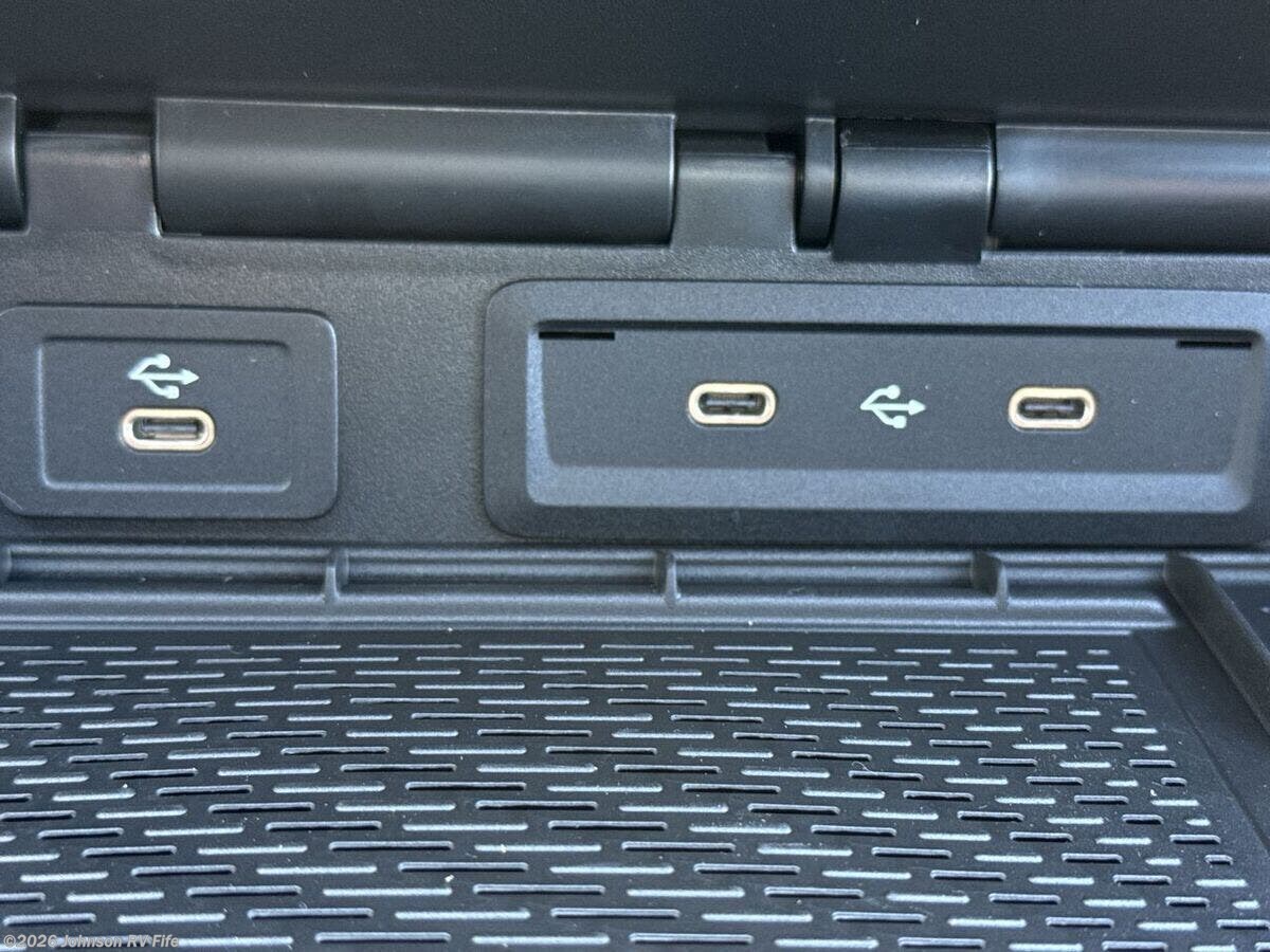 Features Include: Dual Rear Wheels, 170-inch Wheelbase, 250-Amp Alternator, Dual Rear Wheels, Wheel Simulators, Crosswind Assist, Lane Keeping Assist, Recline, Swivel, Rear-View Camera, Awning LED Lights, Entry Screen Door, LED Aisle Lighting, Awning-Style Windows, Roller Shades, Booth Dinette (CB), FX, CB), Pull-Out Pantry, 120v GFCI Outlet, Power Fan, USB-A, USB-C Outlets, CB: 52x76 Corner Bed, FX: 65x74 Flex Bed, Medicine Cabinet, 120v GFCI Outlet, Water Pump Switch, Shower Skylight, Flip-Down Towel Bar, TB), Water Heater Bypass, Black Tank Flush, Fiberglass Exterior, MBL)