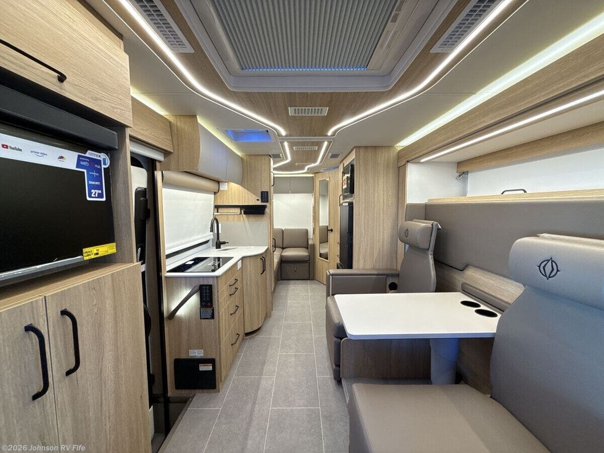 Introducing the 2026 Leisure Travel Vans Unity 24FX, a Class C RV that combines luxury and functionality in a beautifully crafted package. This new model is perfect for those seeking adventure on the open road while enjoying the comforts of home. Under the hood, the Unity 24FX is powered by a robust Mercedes-Benz 2.0L I-4 Turbo Diesel engine, delivering 208 horsepower and 332 lb-ft of torque. The 9G-Tronic automatic transmission paired with electronic stability control ensures a smooth and reliable driving experience. Built on the reliable Mercedes-Benz Sprinter 3500 chassis, it features dual rear wheels and a 170-inch wheelbase for stability and control. Safety is a top priority with a range of features designed to keep you and your passengers secure: - Active Braking Assist - Adaptive Cruise Control - Collision Prevention Assist - Crosswind Assist - Digital Rearview Mirror - Lane Keeping Assist - LED Headlamps with High Beam Assist - Rain Sensing Wipers - Traffic Sign Assist Inside the cab, you’ll find an array of modern amenities: - Power heated ultrafabrics seats with adjustable lumbar support - MBUX touchscreen multimedia system with smart phone integration - Rear-view camera for added safety - Leather-wrapped multi-function steering wheel - Cab privacy drape for discretion The living space is designed for comfort and style: - Power legless box awning with wind sensor - LED lighting throughout with dimmer options - Tile-look vinyl flooring - Soft vinyl ceiling headliner - Ultrafabrics upholstery and valances Dining and kitchen facilities are top-notch, making meal preparations a breeze: - Booth Dinette (CB) with slide-out options - Contoured Corian countertops with stainless steel backsplash - 6.2cf compressor refrigerator/freezer - LP cooktop with hinged glass cover and convection microwave oven For a restful night's sleep, the Unity 24FX offers a flexible bed setup measuring 65x74 inches, ensuring sweet dreams wherever your journey takes you. Bathroom amenities include: - Shower skylight with retractable, self-cleaning screen - Ceramic foot flush hand sprayer toilet - Shower integrated storage The motorhome’s mechanical features ensure convenience and functionality on the road: - 12v Battery Disconnect Switch and 30-foot 30-Amp Service Cord - Truma Aventa Eco AC Heat Pump and Truma AquaGo Comfort Plus Hot Water system - Black tank flush and outdoor shower for ease of maintenance Built with quality craftsmanship, the Unity 24FX boasts: - Vacuum-bonded aluminum framing and fiberglass exterior - Insulated domed fiberglass roof for durability - Plenty of storage solutions including lighted compartments The 2026 Leisure Travel Vans Unity 24FX brings together sophistication and utility, making every trip an exceptional experience. Happy travels! ?????
