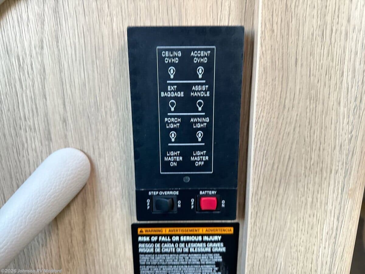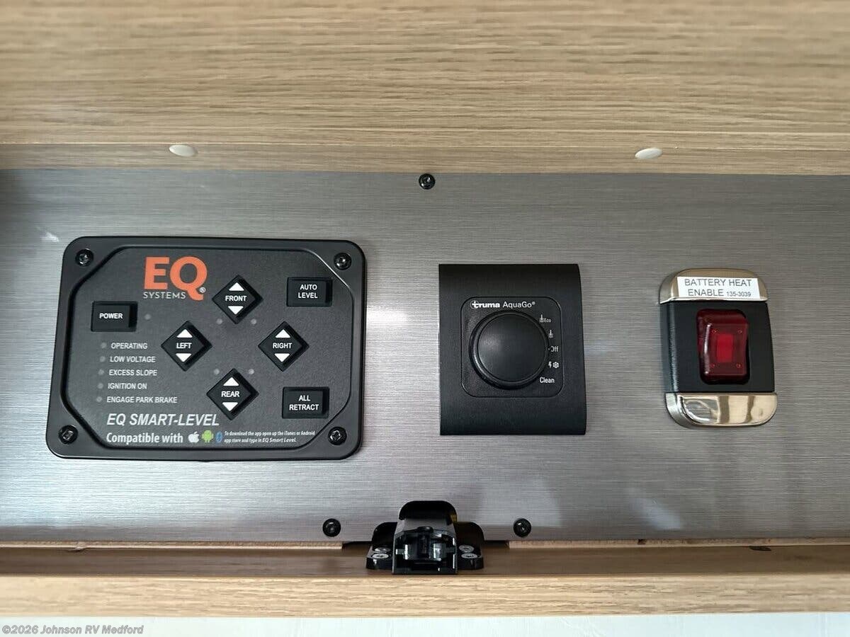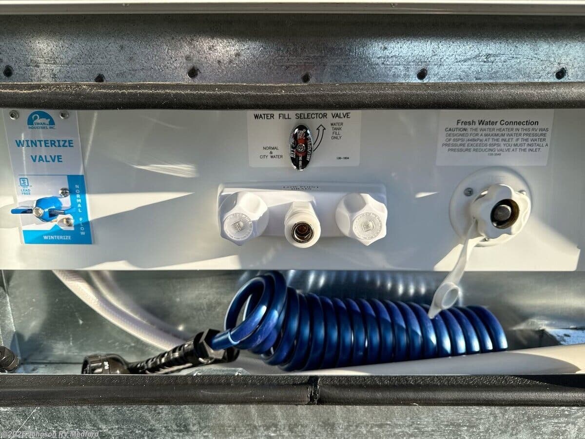 Features Include: Dual Rear Wheels, 170-inch Wheelbase, 250-Amp Alternator, Dual Rear Wheels, Wheel Simulators, Crosswind Assist, Lane Keeping Assist, Recline, Swivel, Rear-View Camera, Awning LED Lights, Entry Screen Door, LED Aisle Lighting, Awning-Style Windows, Roller Shades, Booth Dinette (CB), FX, CB), Pull-Out Pantry, 120v GFCI Outlet, Power Fan, USB-A, USB-C Outlets, CB: 52x76 Corner Bed, FX: 65x74 Flex Bed, Medicine Cabinet, 120v GFCI Outlet, Water Pump Switch, Shower Skylight, Flip-Down Towel Bar, TB), Water Heater Bypass, Black Tank Flush, Fiberglass Exterior, MBL)