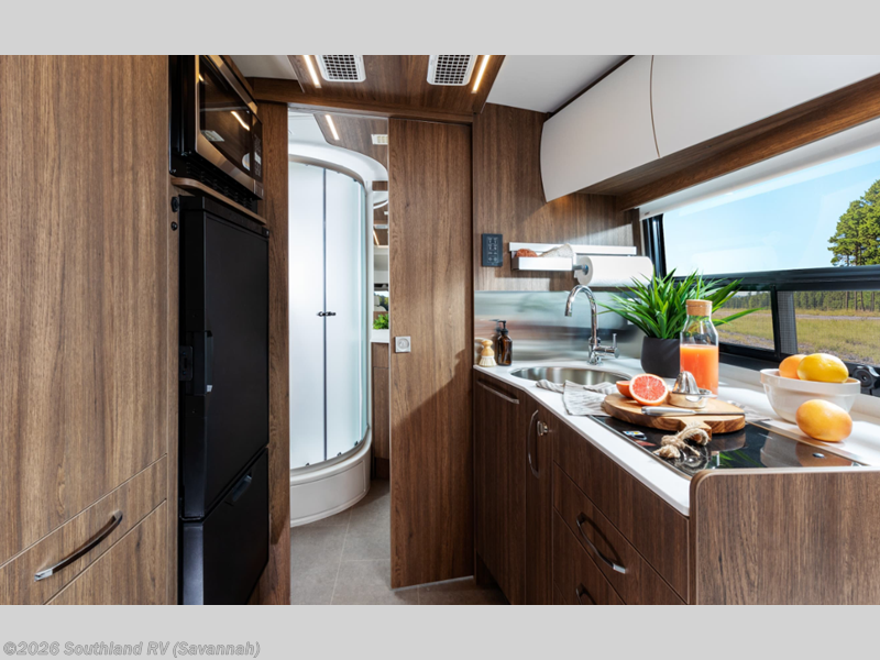 The slide out in this coach will give you plenty of space to relax! You will find that the Murphy bed will provide a great night's rest each night, and the full bath will allow you to clean up each morning. The redesigned Leisure Lounge System features dual reclining chairs, an updated dinette table system, and a panoramic window for great outdoor views. The swivel captain's seats can turn around to become part of the living area during the day, and you'll find plenty of storage space throughout for all your belongings. The galley includes a convection microwave, a flush mount LP cooktop, plus a convenient garbage can and stainless steel backsplash for easy clean-up.