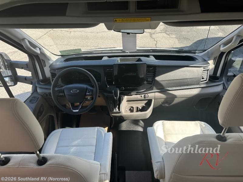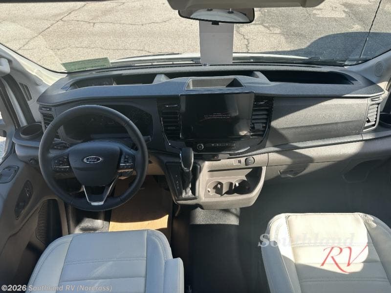 With any Leisure Travel Wonder Class B+ gas motorhome, the construction includes vacuum bonded aluminum framed insulated contoured sidewalls and a domed roof with fiberglass exterior, and a floor with composite exterior on a Ford Transit dual rear wheel chassis. Some highlights include the 16" heavy-duty forged aluminum alloy wheels, the auto high-beam headlamps, and the advance active safety features. The interior offers the SYNC 4 navigation system, curved soft close overhead cabinetry doors with hidden catches, full extension ball bearing soft close drawer tracks, LED aisle lighting and above cabinet hidden accent lights, and tile look vinyl flooring throughout for style and easy care. Optional AWD is available, along with the optional 60th Anniversary Edition decor and exterior color, solar panels for off-grid capability, a battery upgrade, and more!