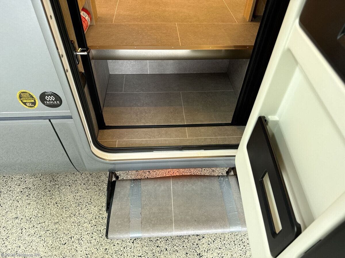 Features Include: 178-inch Wheelbase, 250-Amp Alternator, Tow-Haul Mode, Dual Rear Wheels, Driver Alert, Ford Co-Pilot 360, Front Fog Lamps, Intersection Assist, Lane-Keeping Assist, Pre-Collision Assist, Remote Start, Air Conditioning, Rear-View Camera, Awning LED Lights, Entry Screen Door, LED Aisle Lighting, Awning-Style Windows, Roller Shades, Pull-Out Pantry, Garbage Can, 120v GFCI Outlet, Mobile App Control, USB-A, USB-C Outlets, Medicine Cabinet, 120v GFCI Outlet, Shower Skylight, Flip-Down Towel Bar, Surge Protector, 19k Furnace (RL, RTB), Water Heater Bypass, Black Tank Flush, Fiberglass Exterior