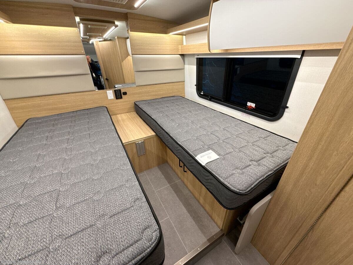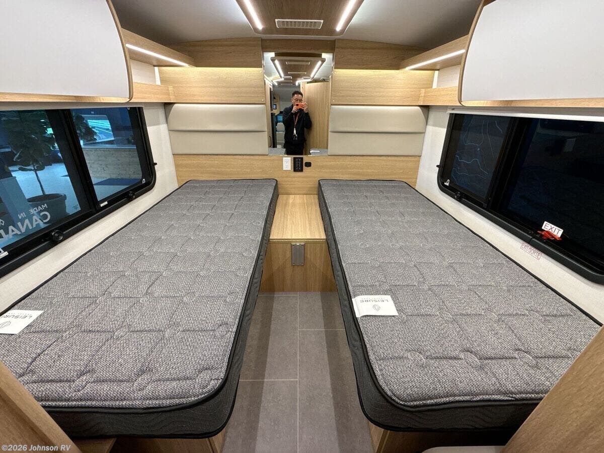 Introducing the 2026 Leisure Travel Vans Wonder RTB, a luxury Class C RV designed to redefine your travel experience. This meticulously crafted vehicle combines advanced technology, comfort, and style, making it an ideal choice for road enthusiasts looking for unmatched charm and sophistication. This versatile RV is built on the Ford Transit Dual Rear Wheel Chassis, offering an optional Intelligent All-Wheel Drive (AWD) system to ensure a smooth ride across various terrains. With a powerful 3.5L V6 EcoBoost gas engine (310 HP, 400 lb-ft torque) and a 10-speed Automatic Selectshift transmission featuring a Tow-Haul mode, it caters to your adventure with ease. **Exterior Highlights:** - Painted full body with clear coat and color-match bumper - Hitch with 7-pin connector, aluminum alloy dual rear wheels - Heavy-duty 16-inch forged aluminum wheels - Electric power-assist steering with 4-wheel anti-lock braking system - Concealed capless fuel filler **Safety & Security:** - Ford Co-Pilot 360 suite featuring Lane-Keeping Assist, Forward Collision Warning - Automatic Emergency Braking and rain-sensing wipers - Intelligent Adaptive Cruise Control and Intersection Assist - HID high-intensity discharge headlamps, front fog lamps - Pre-Collision Assist and Post-Collision Braking systems **Cab Features:** - Painted fiberglass running boards and exterior courtesy lights - Power windows and door locks for convenience - Ultrafabrics swivel recline cab seats with adjustable lumbar support - Steering wheel wrapped in leather with multifunctional controls - 12-inch multimedia color touchscreen with SYNC 4 navigation, Apple CarPlay, and Android Auto compatibility **Living Spaces:** - Legless box power wind sensor awning with LED lights - Luxurious tile-look vinyl flooring and LED aisle lighting - Awning-style windows with roller shades for privacy - Rear sofa featuring two recliners and flexible dining solutions - Ultrafabrics upholstery with soft-close hidden catch cabinets and full-extension drawers **Dining & Kitchen:** - Contoured Corian countertops with pull-out pantry - Stainless steel under-mount sink and backsplash - LP cooktop with hinged glass cover and convection microwave oven - 6.2 cu ft compressor refrigerator-freezer and small appliance storage **Electronics & Connectivity:** - Central touchscreen display with mobile app control - USB-A and USB-C outlets alongside a TV antenna with mobile data/WiFi extender - Satellite dish pre-wire, exterior cable TV hookup **Sleeping Arrangements:** - Rear Lounge Murphy bed (58x74), and RTB rear convertible twin beds (32x74) - Deep hanging wardrobes ensuring ample storage **Bathroom Luxury:** - Skylight showers with retractable self-cleaning screen and curved glass door options - Ceramic macerator toilet, power fan, and various storage functionalities **Mechanical & Utility:** - 270Ah 12v smart lithium battery with internal heating system - 30-foot 30-amp service cord and auto-start 4.0 gas generator - 13.5k AC Truma Aventa Eco and 19k furnace (RL, RTB) - Water filtration system, outdoor shower, black tank flush **Coach Build:** - Vacuum-bonded aluminum framed construction with fiberglass exterior - Insulated domed fiberglass roof for enhanced durability - Rear storage with pass-through garage, equipped with slide and lighted compartments The Leisure Travel Vans Wonder RTB is the epitome of refined luxury on wheels, setting the standard for contemporary RV lifestyles. Perfect for both short escapes and extended journeys, this vehicle is sure to turn heads while providing the comfort and convenience essential for the modern explorer. ????