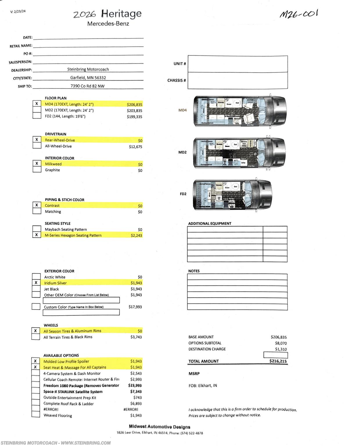 Request More Info on this 2026 Midwest Offered for sale by Steinbring Motorcoach