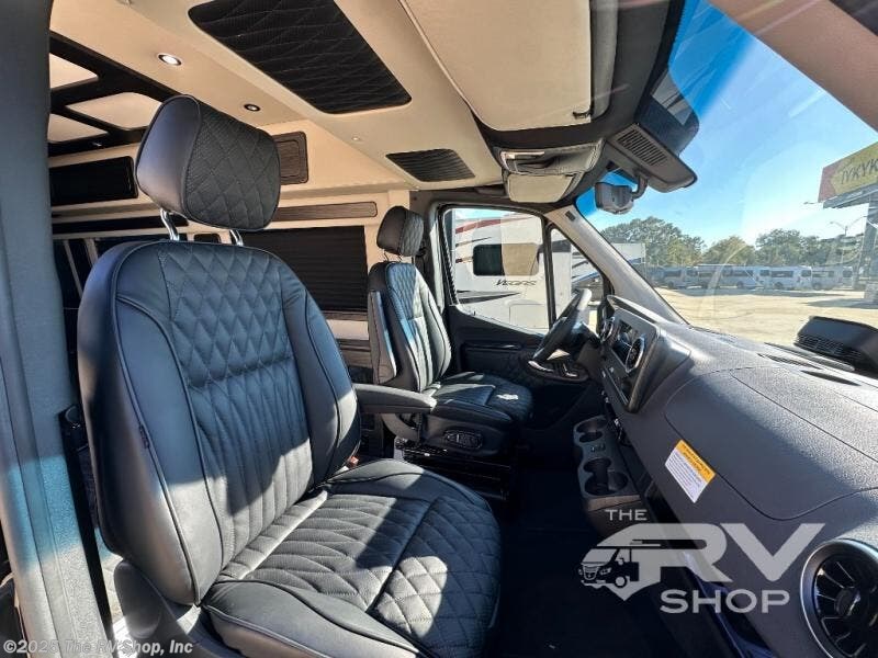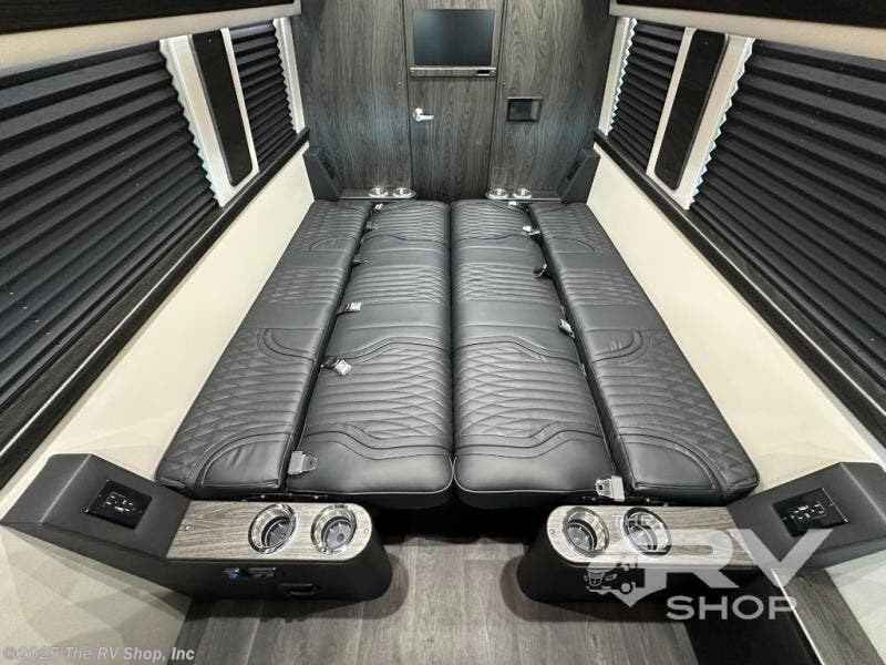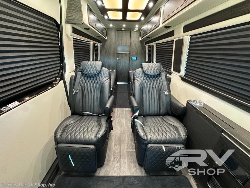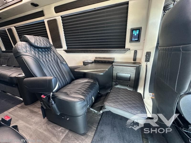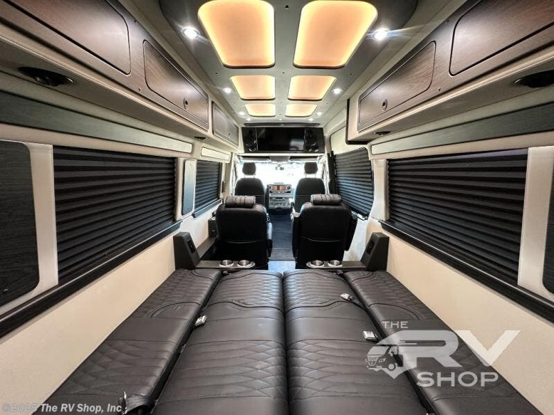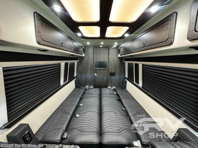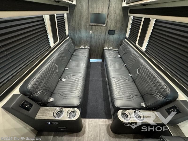 Load up the family or your group of friends in this Day Cruiser Class B diesel van which includes four captain's chairs and two sofa/foldout beds with a total of ten seatbelts. Now imagine where everyone will sit while enjoying the luxurious interior, the comfortable seating, and the beautiful highway scenery. Once at your destination, you can all watch movies and shows on the LED HDTV for some down time and eat snacks and meals cooked in the microwave. Don't forget about the convenient private toilet room with sink. There is also a refrigerator beneath the sink for cold drinks and snacks. Come see how this model will fit your traveling needs.