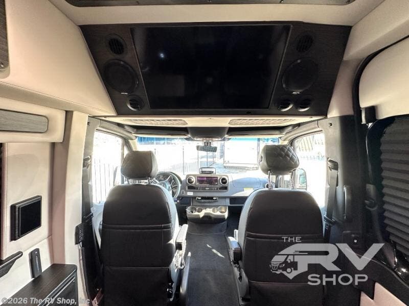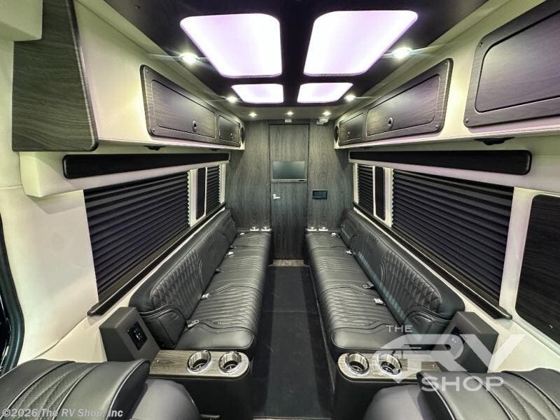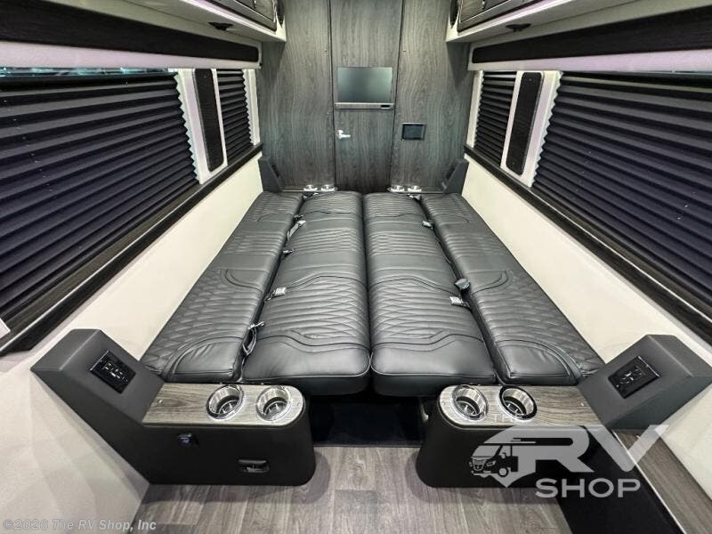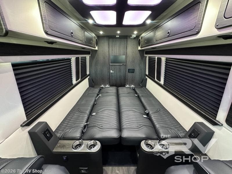 Load up the family or your group of friends in this Day Cruiser Class B diesel van which includes four captain's chairs and two sofa/foldout beds with a total of ten seatbelts. Now imagine where everyone will sit while enjoying the luxurious interior, the comfortable seating, and the beautiful highway scenery. Once at your destination, you can all watch movies and shows on the LED HDTV for some down time and eat snacks and meals cooked in the microwave. Don't forget about the convenient private toilet room with sink. There is also a refrigerator beneath the sink for cold drinks and snacks. Come see how this model will fit your traveling needs.