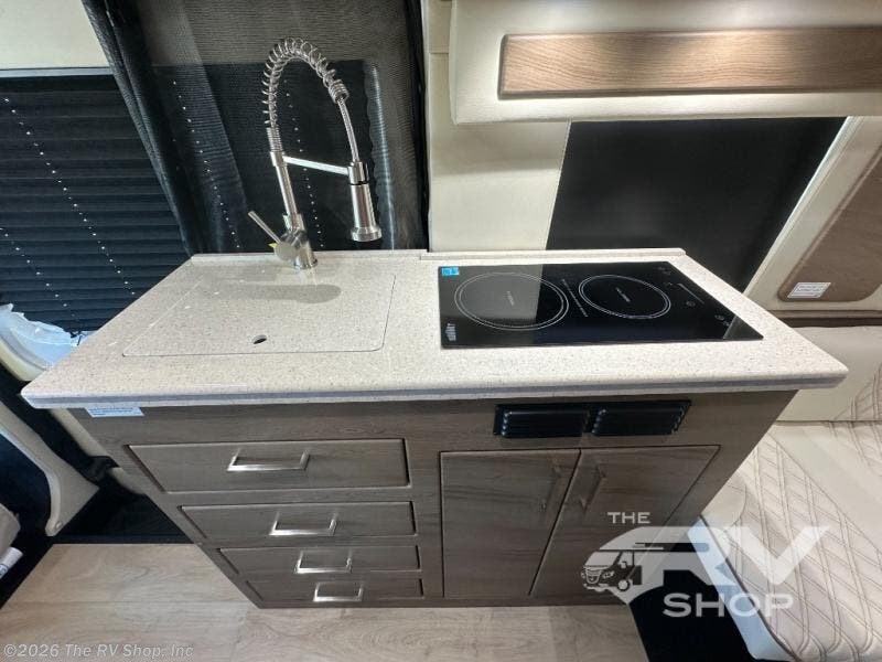 Forget about the way that you used to travel and begin traveling like a pro with this Ford Passage Class B gas motorhome! This coach has it all! You will find a wet bath with a retractable clothes line for staying clean, a rear power folding sofa bed for getting a full night of rest, a galley kitchen with an induction cooktop and stainless steel microwave for preparing easy meals, and a rear HDTV for entertaining yourself after a long day of traveling. Some of the other additions that are sure to make your life easier are the pull-out pantry below the countertop, the cab swivel seats, the climate controlled roof fan, and more!