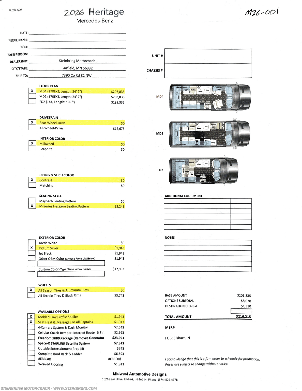 Request More Info on this 2026 Midwest Heritage MD4 170EXT Offered for sale by Steinbring Motorcoach