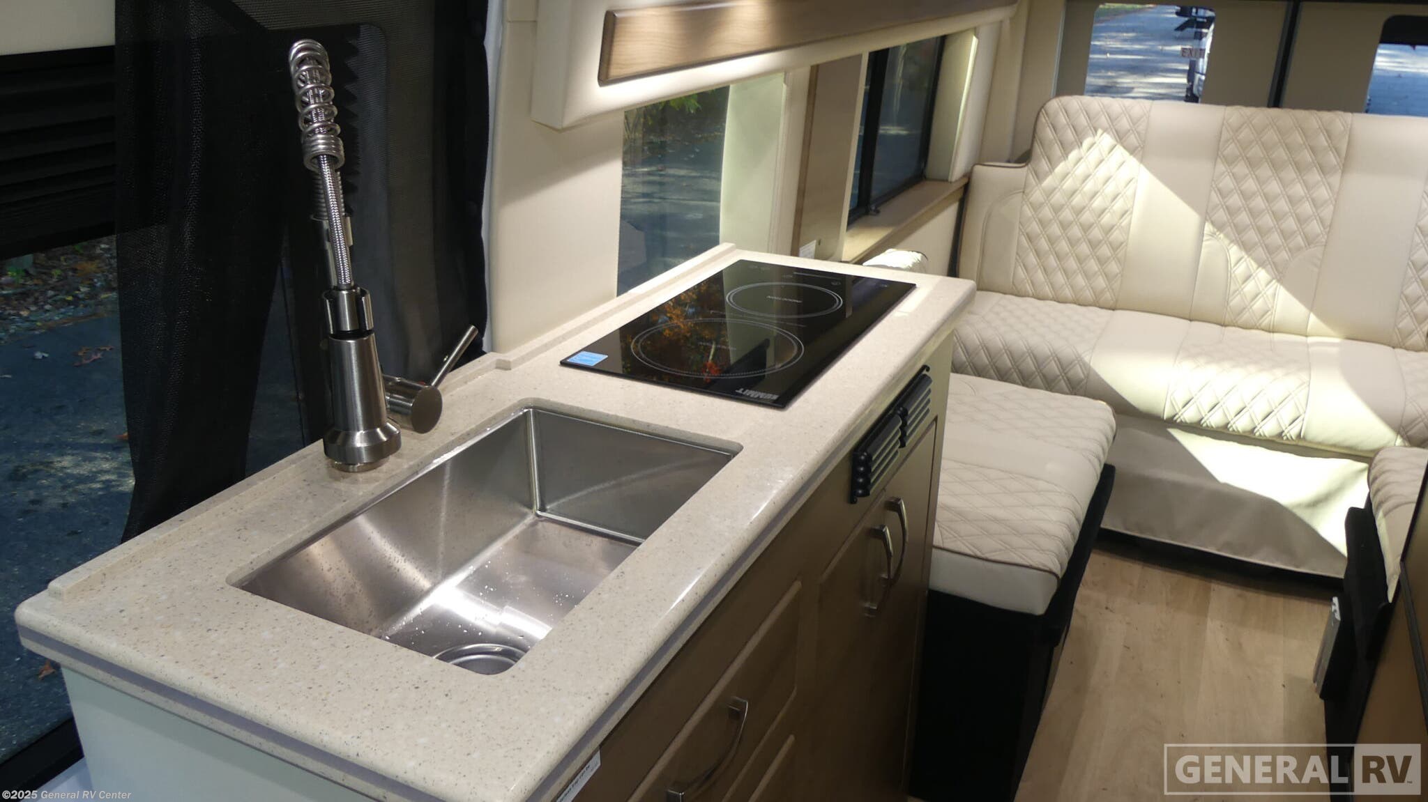 Midwest Automotive Designs Ford Passage Class B gas motorhome MD2 (Ford) highlights: Wet Bath Power Sofa Bed Rooftop Solar Charging Induction Cooktop All-Wheel Drive Forget about the way that you used to travel and begin traveling like a pro with this Ford Passage Class B gas motorhome! This coach has it all! You will find a wet bath with a retractable clothes line for staying clean, a rear power folding sofa bed for getting a full night of rest, a galley kitchen with an induction cooktop and stainless steel microwave for preparing easy meals, and a rear HDTV for entertaining yourself after a long day of traveling. Some of the other additions that are sure to make your life easier are the pull-out pantry below the countertop, the cab swivel seats, the climate controlled roof fan, and more! The Midwest Automotive Designs Ford Passage Class B gas motorhome is the luxurious and nimble coach of your dreams! With the Ford Passage, you will have superior craftsmanship which is most evidently seen in the Lithium Freedom 600 Package, the AWD drivetrain, and the complete insulation package. A power awing with an LED light comes standard outside, along with a 320-watt rooftop solar charging system, a rear hitch with a wiring package, and an exterior shower to name a few conveniences. Inside, you'll find composite seamless flooring, solid surface countertops, and under-sofa storage for your luggage and more!