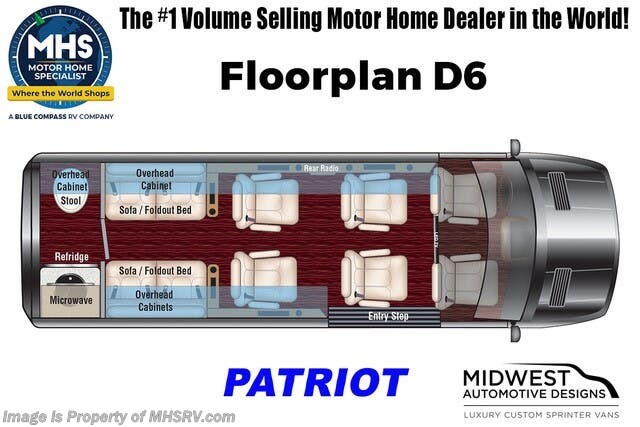 About Us Shop a great selection of Mercedes Sprinter diesel Class B RVs all at MHSRV! Choose from Midwest Automotive Designs Patriot – Patriot Cruiser – Forest River OGV V RV – V Cruise – Thor Motor Coach Tranquility – Entegra Coach Launch and more. We also buy and sell quality pre-owned models such as Airstream Interstate – Atlas – Jayco Terrain – Tiffin GH1 – Winnebago Revel – Adventure Wagon – Pleasure Way Plateau – Ascent – Roadtrek – Leisure Travel Wonder – Unity - Coachmen Galleria – Thor Sanctuary and much more. Visit for our complete line-up and the sale prices that have made us the #1 volume selling motor home dealership in the world 12 years in a row! For more details on this unit, our full inventory, brochures, window stickers, videos, photos, and customer reviews, visit or call 800-335-6054 for the Texas location or 334-288-0331 for our Alabama location. "Why Pay More? Why Settle for Less?"