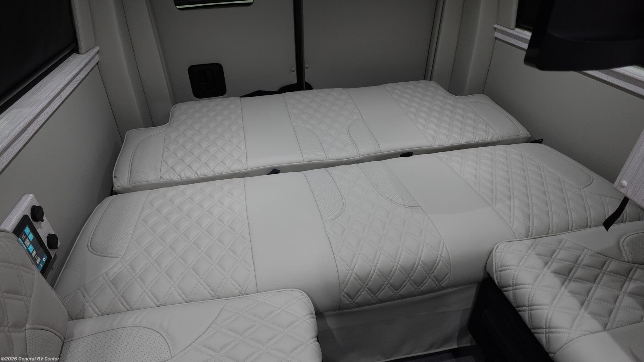 **Midwest Automotive Designs Patriot Class B diesel motorhome FD2 highlights:** * Wet Bath * Power Rear Sofa Bed * Lagun Removable Table * Rear HDTV * Overhead Cabinetry Travel in comfort and versatility with the 2026 Patriot FD2. The rear power folding sofa quickly converts from a spacious lounge into a comfortable sleeping area, while the Lagun removable table creates a convenient spot for dining or working. Overhead cabinets, a wardrobe, and additional drawers provide organized storage throughout. The galley is equipped with a coordinated front panel refrigerator, stainless steel microwave, drawers, and multiple outlets and USB chargers to keep everything powered up. A private wet bath with shower, porcelain toilet, solid surface sink, and power vent allows you to freshen up wherever the road takes you. Built for year-round travel, this coach includes a Timberline tankless hot water system, diesel and electric furnace, roof-top air conditioner, 2000W inverter/charger, and heating pads on the holding tanks. With premium cabinetry, composite seamless flooring, deluxe captain’s chairs, and a complete privacy shade package, the Patriot FD2 delivers refined comfort in a sleek Class B design.