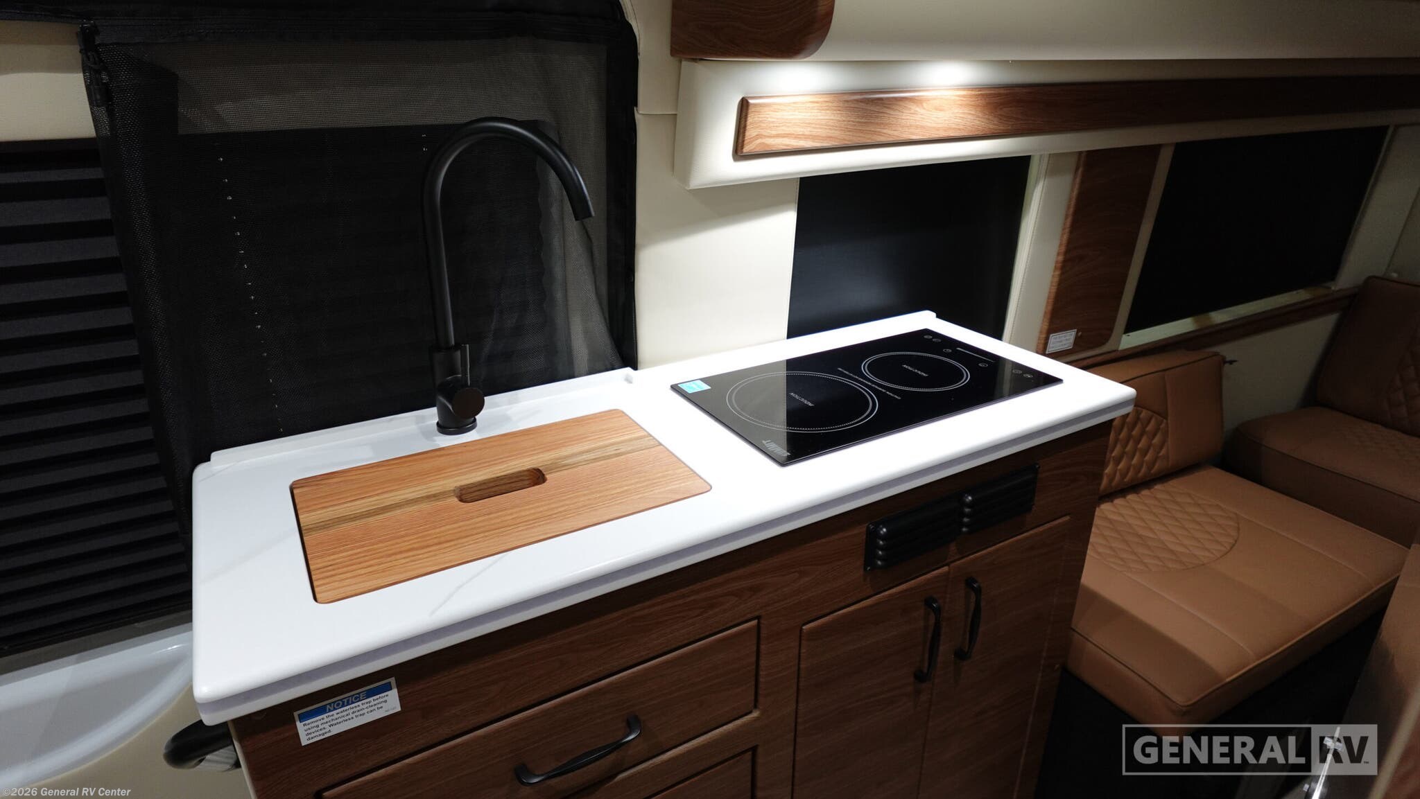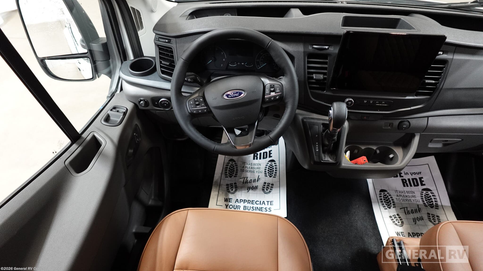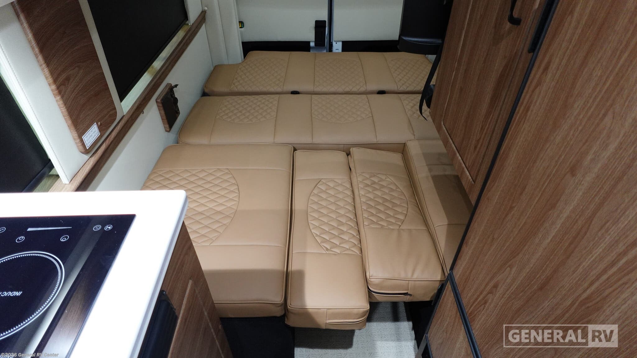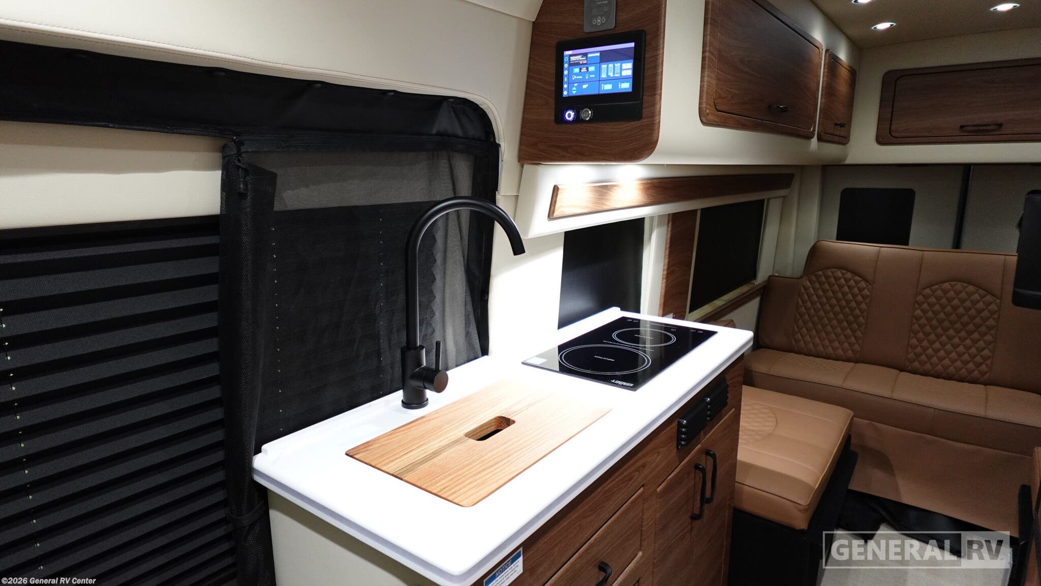 Midwest Automotive Designs Patriot MD2 148EXT Class B gas highlights: • Power Folding Rear Sofa Bed • Lagun Removable Table • Wet Bath • Exterior Shower • Rooftop Solar Charging The Patriot MD2 148EXT Class B gas motorhome by Midwest Automotive Designs is built for travelers seeking a perfect blend of luxury and functionality in a compact design. The front captain’s chairs swivel to create a comfortable lounge area, while the Lagun removable table provides a convenient space for dining or working. In the galley, you’ll find a stainless steel sink with flush mount cover, an induction cooktop, microwave, and a spacious 7.3 cu. ft. refrigerator, making meal prep on the road simple and efficient. Thoughtful touches like dove tail drawers with soft-close slides, composite seamless flooring, and premium cabinetry with hidden hinges elevate the interior feel. In the rear, the power folding sofa easily converts into a comfortable sleeping area, with additional storage underneath for your gear. The fully equipped wet bath includes a shower with dual entry solid doors, a porcelain toilet, solid surface sink, and a power bath vent for added convenience. You’ll also appreciate features like side and rear screen doors, complete insulation and privacy shade packages, and heating pads for the holding tanks, allowing for extended-season travel. Whether you're heading out for a weekend getaway or a longer journey, the Patriot MD2 148EXT delivers comfort, versatility, and upscale design in a nimble Class B package.