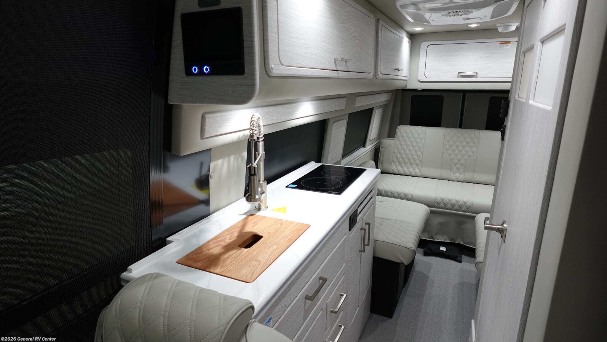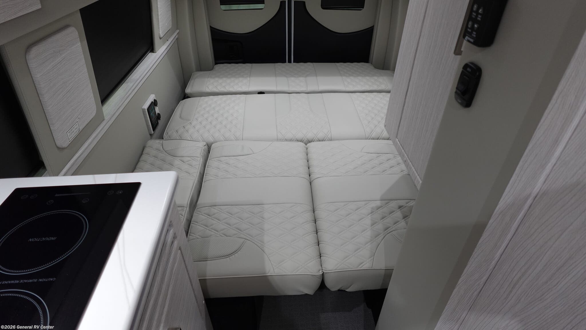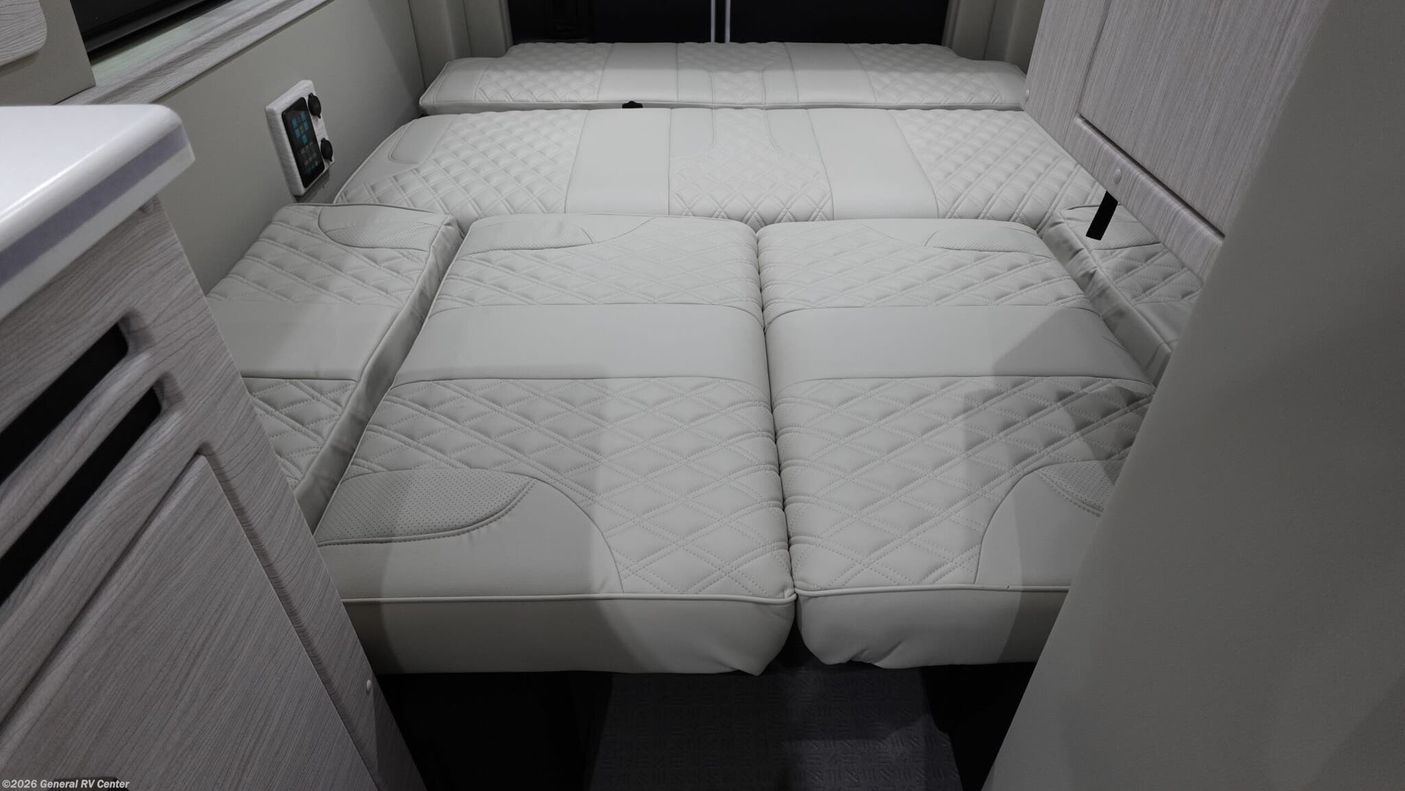 2026 Midwest Automotive Designs Patriot MD3 Class B Diesel Motorhome Highlights: - Rear captain chairs with recline & slide pedestals - Flip-Up Computer Table - LED ceiling and courtesy lights - Rear Convertible Lounge The 2026 Patriot MD3 is designed for travelers who want comfort and versatility wrapped in a refined, automotive-inspired interior. The rear lounge serves as the heart of the coach, featuring premium captain-style seating that reclines, slides, and converts into a spacious sleeping area with the help of the Luxe Foam power bed and power ottomans. Two removable tables allow you to create dining or workspace setups in both the rear lounge and the front cab, giving you flexibility whether you’re relaxing, working, or entertaining on the road. Mid-coach, the galley is thoughtfully arranged for real cooking convenience, offering a microwave above the refrigerator, a slide-out trash system, and a combination of overhead cabinets and slide-out pantry storage to keep essentials organized. A flip-up computer table near the entry adds a dedicated spot for planning, working, or managing travel logistics. The fully enclosed wet bath provides independence on long trips, with a shower and stool arranged to maximize space without sacrificing comfort. Throughout the cabin, the MD3 incorporates modern amenities that elevate every mile, including USB-C charging stations, upgraded LED lighting, and an enhanced Alpine sound system with a dedicated amp and subwoofer. A new insulation package and the powerful 15,000 BTU A/C with heat pump ensure year-round comfort, while the Hybrid Power Pack supports off-grid capability with reliable, quiet power. Outside, the all-in-one utility bay and full Aerokit ground-effects package complete a motorhome that blends practicality, luxury, and style in a way only Midwest Automotive Designs can deliver.