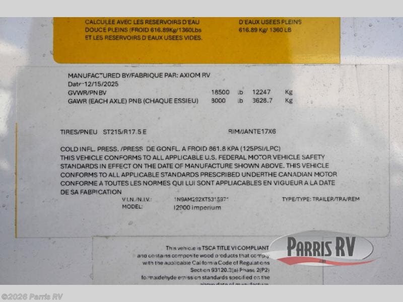 Request More Info on this 2026 Miscellaneous Axiom RV Imperium I2900 Offered for sale by Parris RV