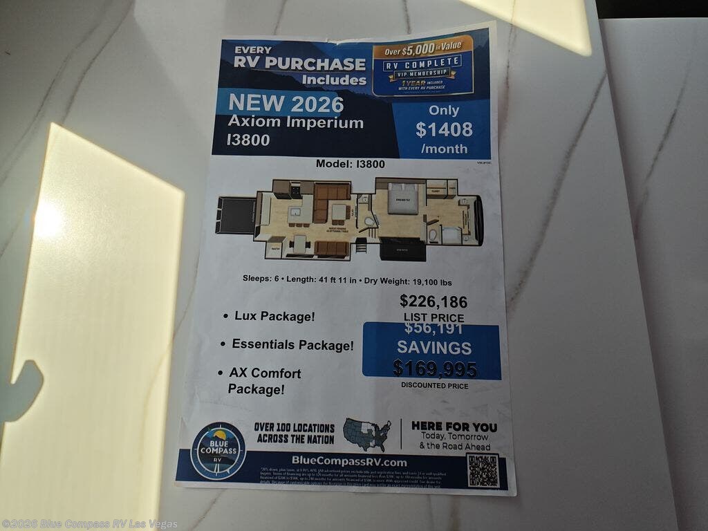 Request More Info on this 2026 Miscellaneous Axiom RV Imperium I3800 Offered for sale by Blue Compass RV Las Vegas