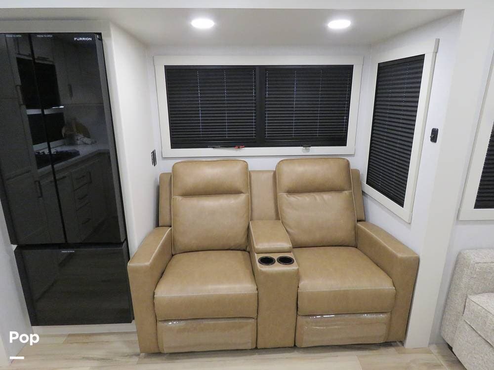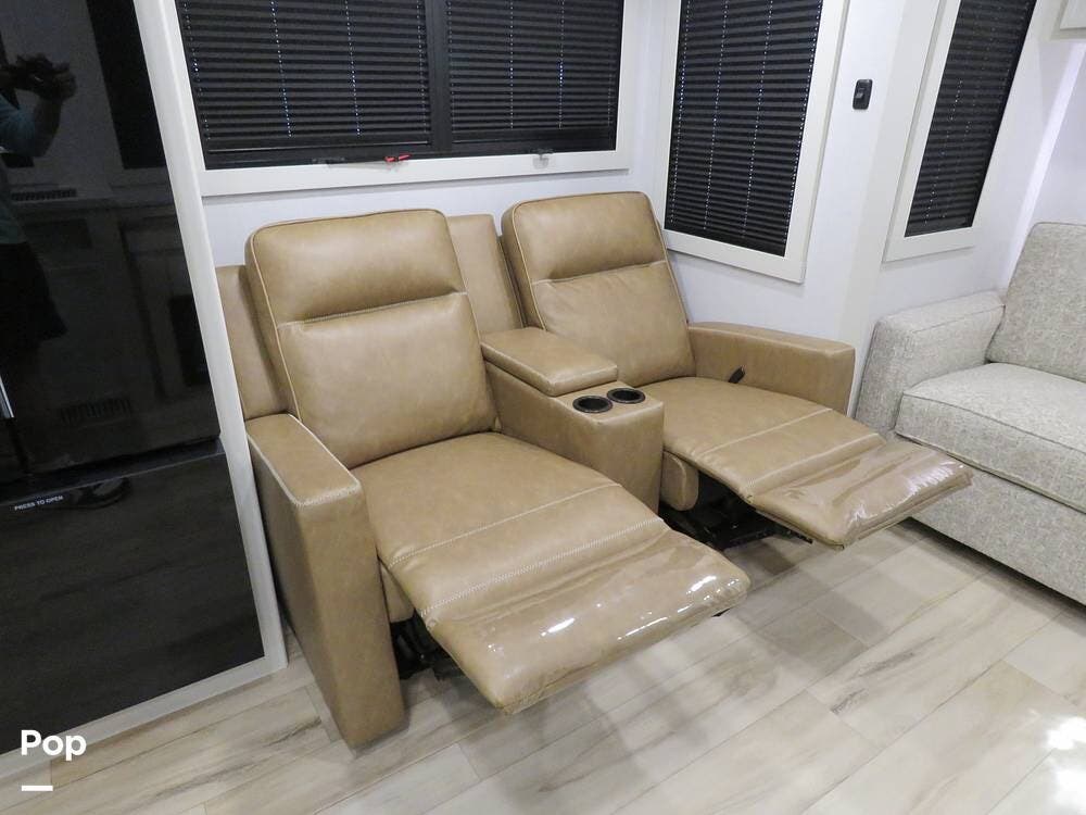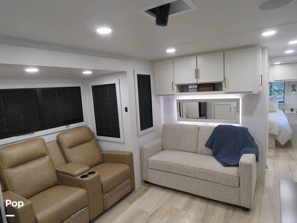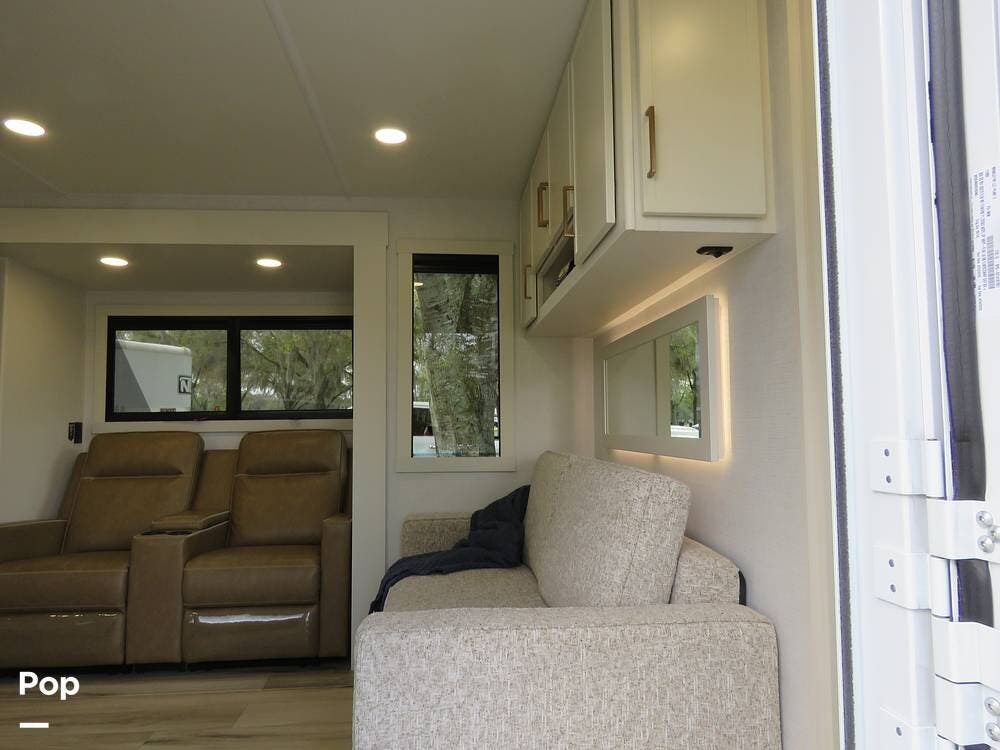 The slide-out really opens up the living area, giving you room to relax in the theater seating or tri-fold sofa. Add Brinkley upgraded projector TV.
