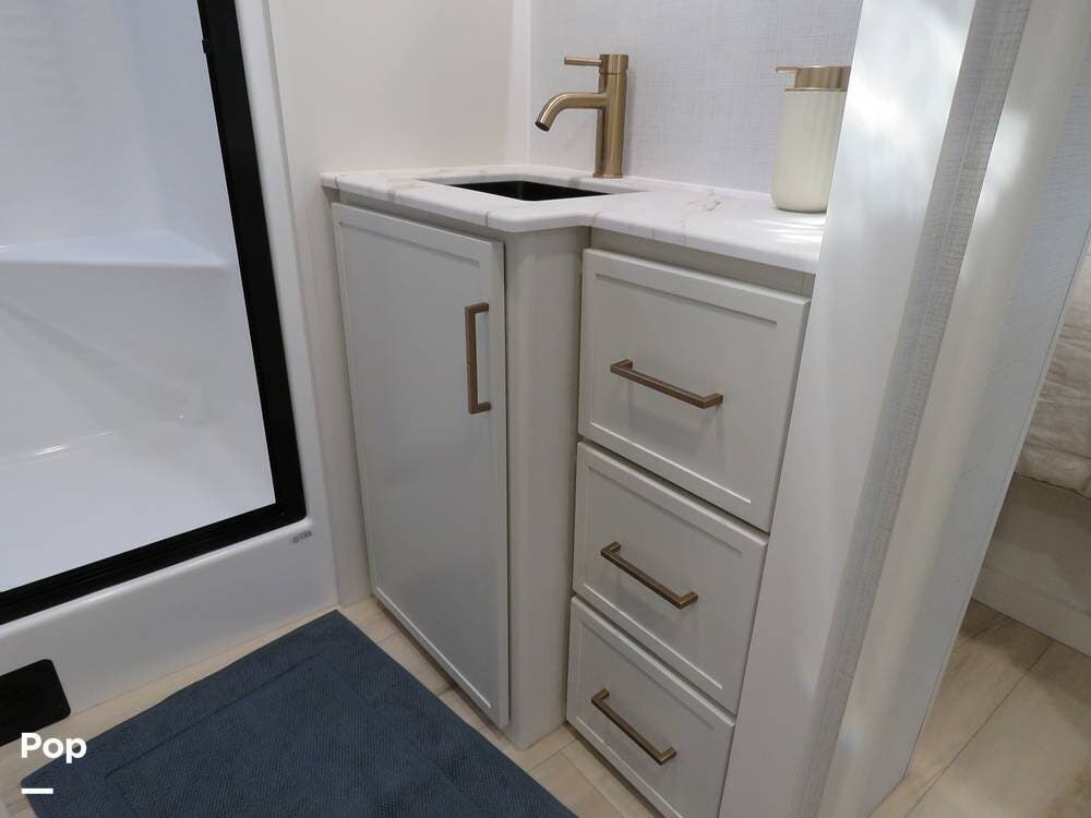 The fit and finish throughout, from the trim work to the cabinetry, stand out compared to many mass-market travel trailers.