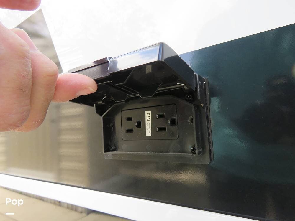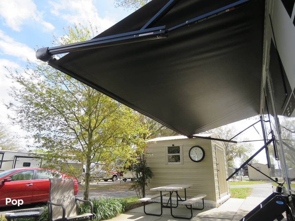 Outside, the large power awning with LED lighting creates a comfortable outdoor living space.