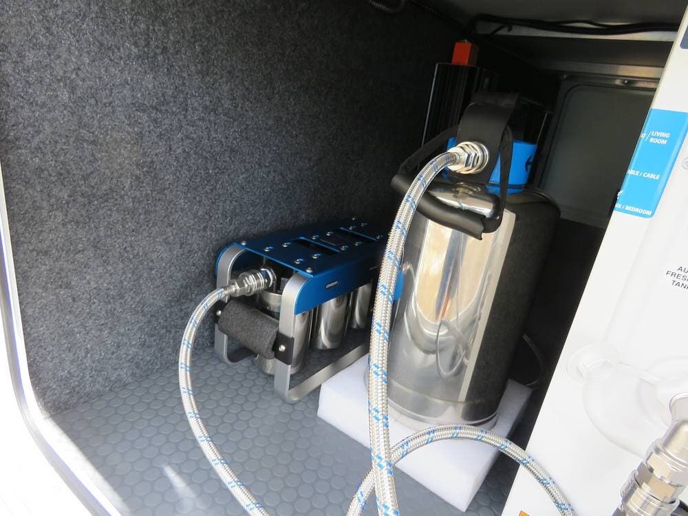 Up front, you'll find a private bedroom with a king-size bamboo memory foam mattress and an ingenious under-bed wardrobe/storage that needs to be seen. Wonderful.