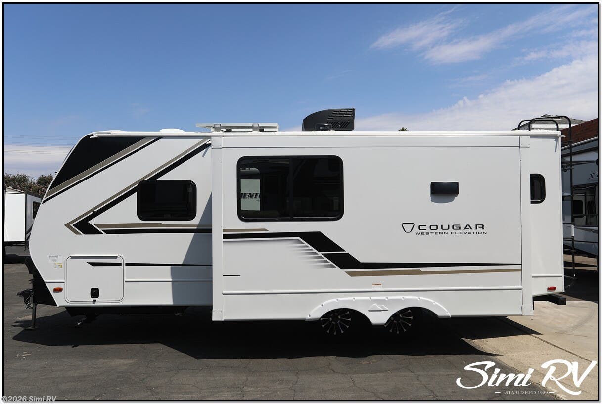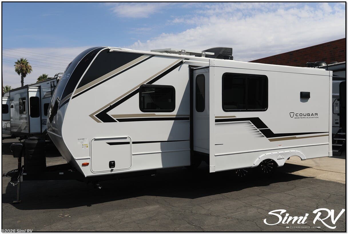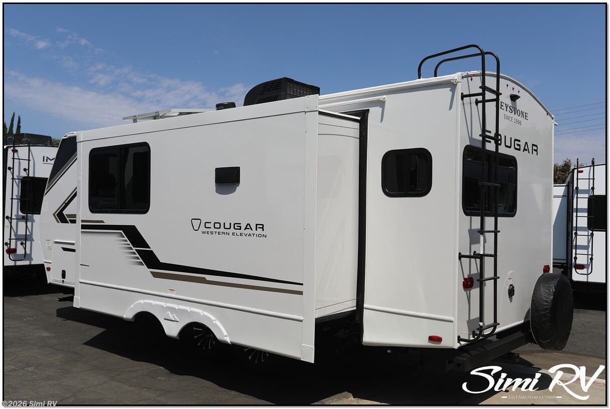 Half-Ton Towing, Full-Featured FunTowable by most of today's half-ton trucks, Keystone Cougar travel trailers are designed for maximum camping flexibility. Cougar Half-ton travel trailers offer the brand's premium features including full auto-leveling, the brand's boondocking-friendly SolarFlex packages, and larger tank capacities. Cougar Sport travel trailers, manufactured for west coast distribution, offer a streamlined appearance, lighter weights and price points that make it easy to get into Cougar's legendary style and quality. Explore our models to find the standards and options that are right for you.EASY TO TOW! WESTERN ELEVATION, BIG SLIDE-OUT, REAR KITCHEN, ELEC AWNING, SOLAR, INVERTER, KING BED, OUTSIDE FRIDGE, BIG PANTRY