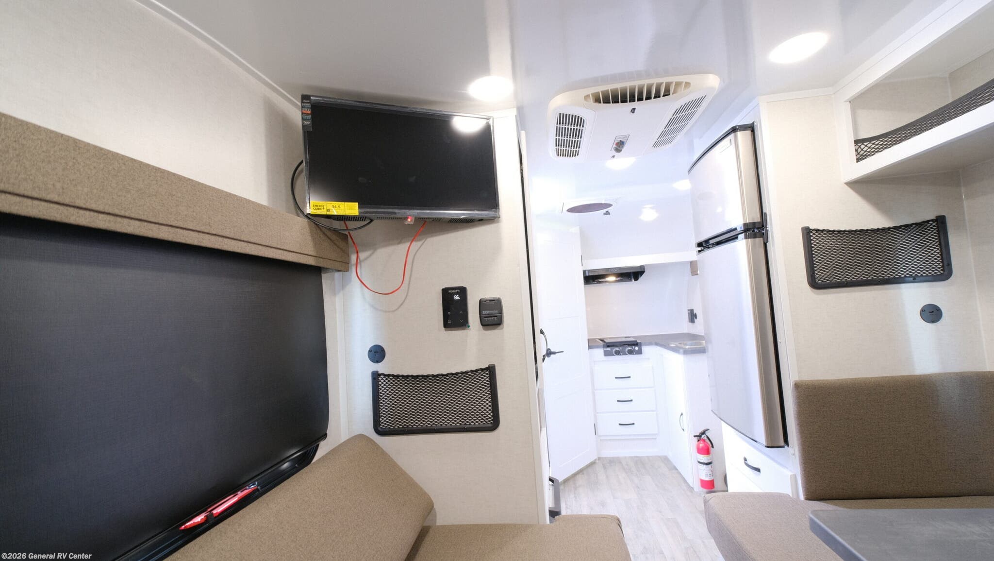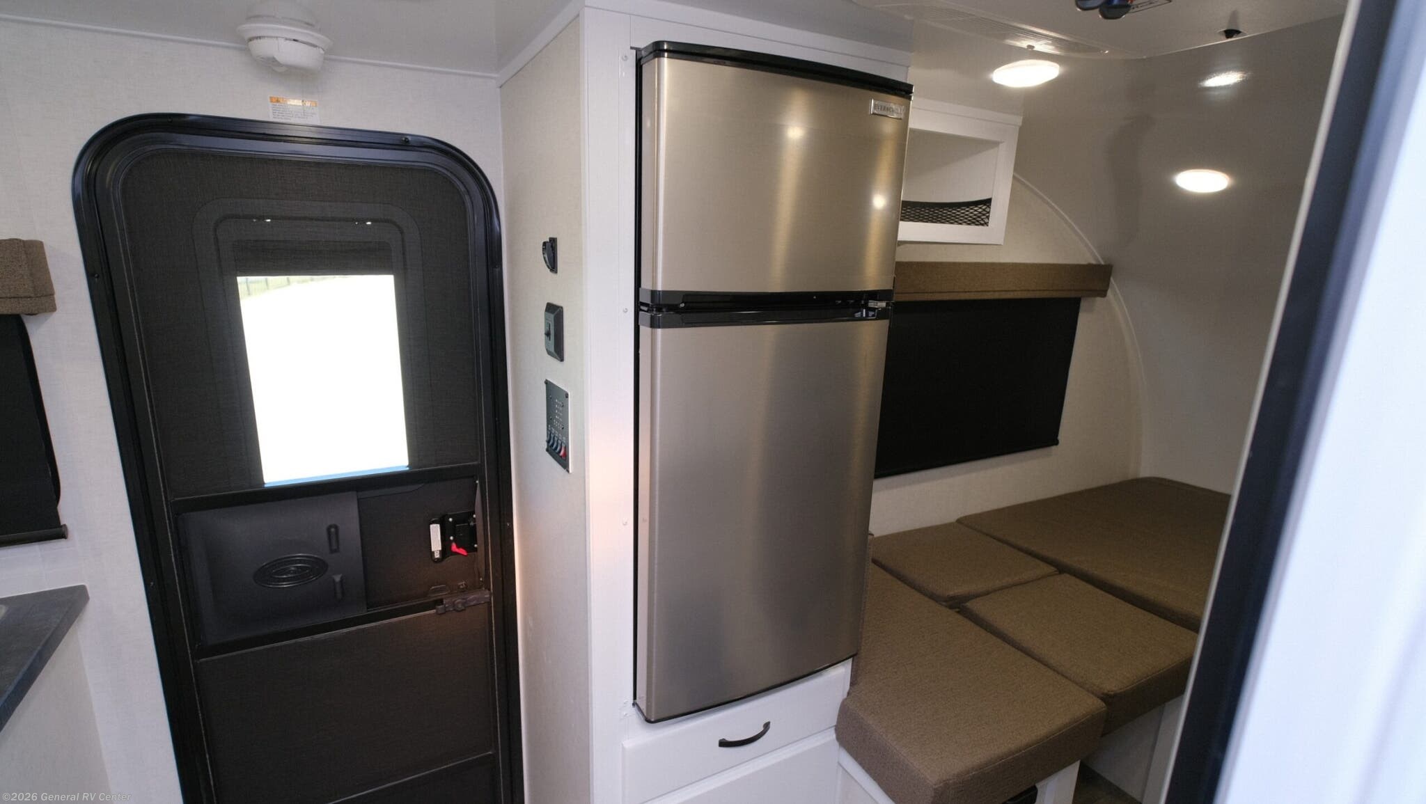 Modern Buggy RV Big Buggy teardrop trailer BB17 highlights: Large Refrigerator/Freezer Dometic Propane Furnace Accessory Hitch 2-Way Bath Vent Fan You'll love camping in this spacious trailer that can sleep up to three people. There is a two-burner stove with a cover so you can cook meals and enjoy extra counter space when you need it. The large refrigerator/freezer will let you keep your food fresh, and the stainless-steel sink will make clean up easier than ever. The dinette/bed will give you a place to dine together, and you're sure to appreciate the flex-bed system that gives you the option for a 78" x 83" bed, two twin-size beds, or a full-size bed! This trailer also includes a dry bathroom, a feature usually unheard of in teardrop trailers! With the Big Buggy teardrop trailer by Modern Buggy RV, you will have all-terrain tires with 14" ground clearance allowing you to venture on bumpy, muddy and off-the-beaten path roads. They are full of modern amenities including an A/C and furnace, a large refrigerator, an on-demand water, plus convenient storage spaces. These models are built on a high-quality strength, custom steel frame, and are put together with AZDEL ceiling and walls. Get out and explore today with the Big Buggy in tow!