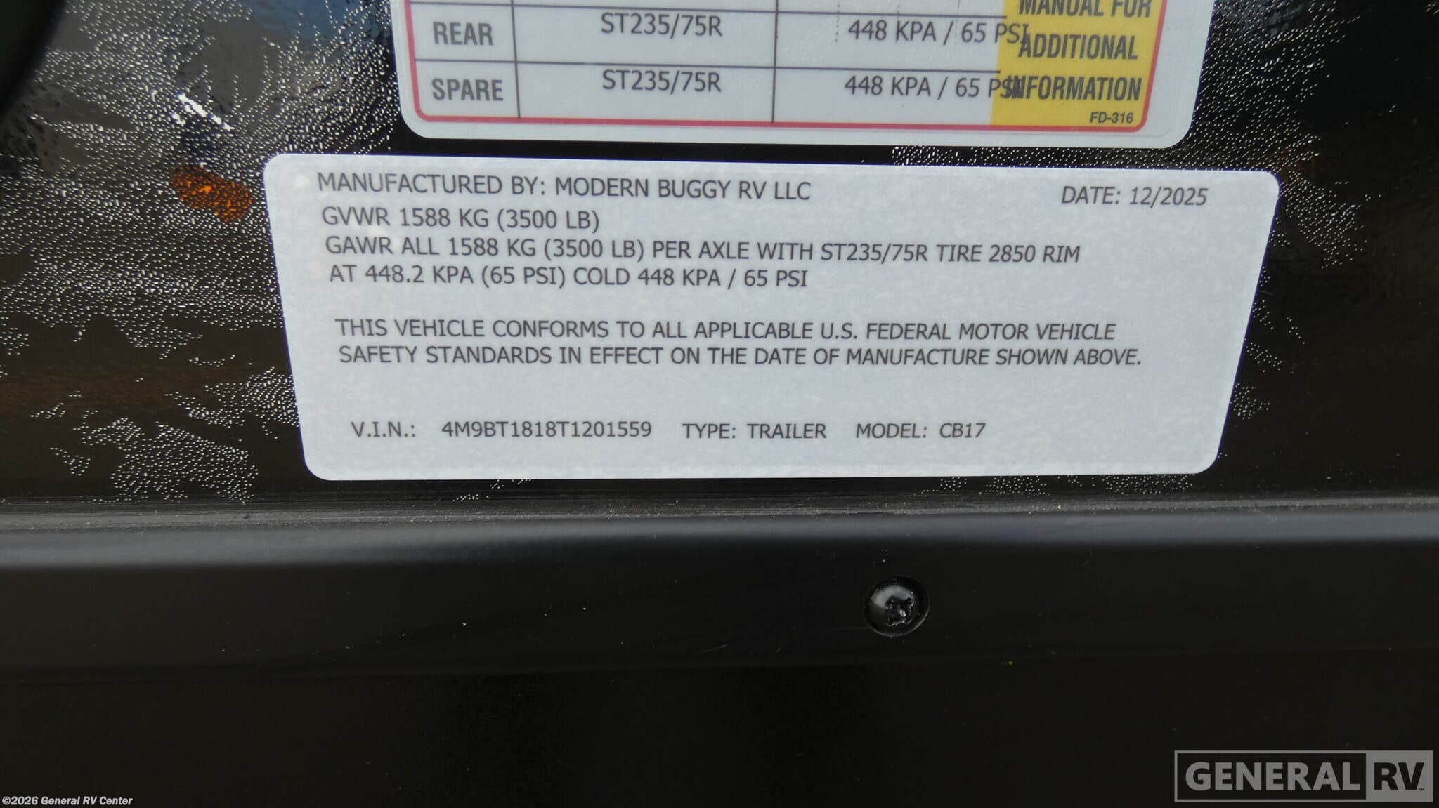 Request More Info on this 2026 Modern Buggy Trailers Country Born CB17 Offered for sale by General RV Center