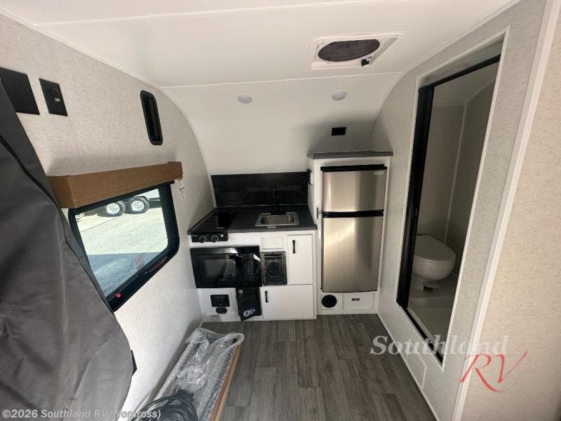 Make every outdoor adventure count with a Hopper travel trailer or toy hauler travel trailer by Modern Buggy RV! These lightweight units are built to last with a custom steel frame and Azdel walls for added durability. You'll find all the necessities needed inside, such as a 13.5k BTU A/C, a 19k BTU furnace, and a Fogatti on-demand water heater for hot showers after trail riding or hiking. The Hopper is off-road capable with all-terrain tires, electric brakes, and 14" ground clearance. You will also enjoy the black roller shades inside, along with White Sands cabinetry and USB stations to keep your gadgets charged and ready to go!