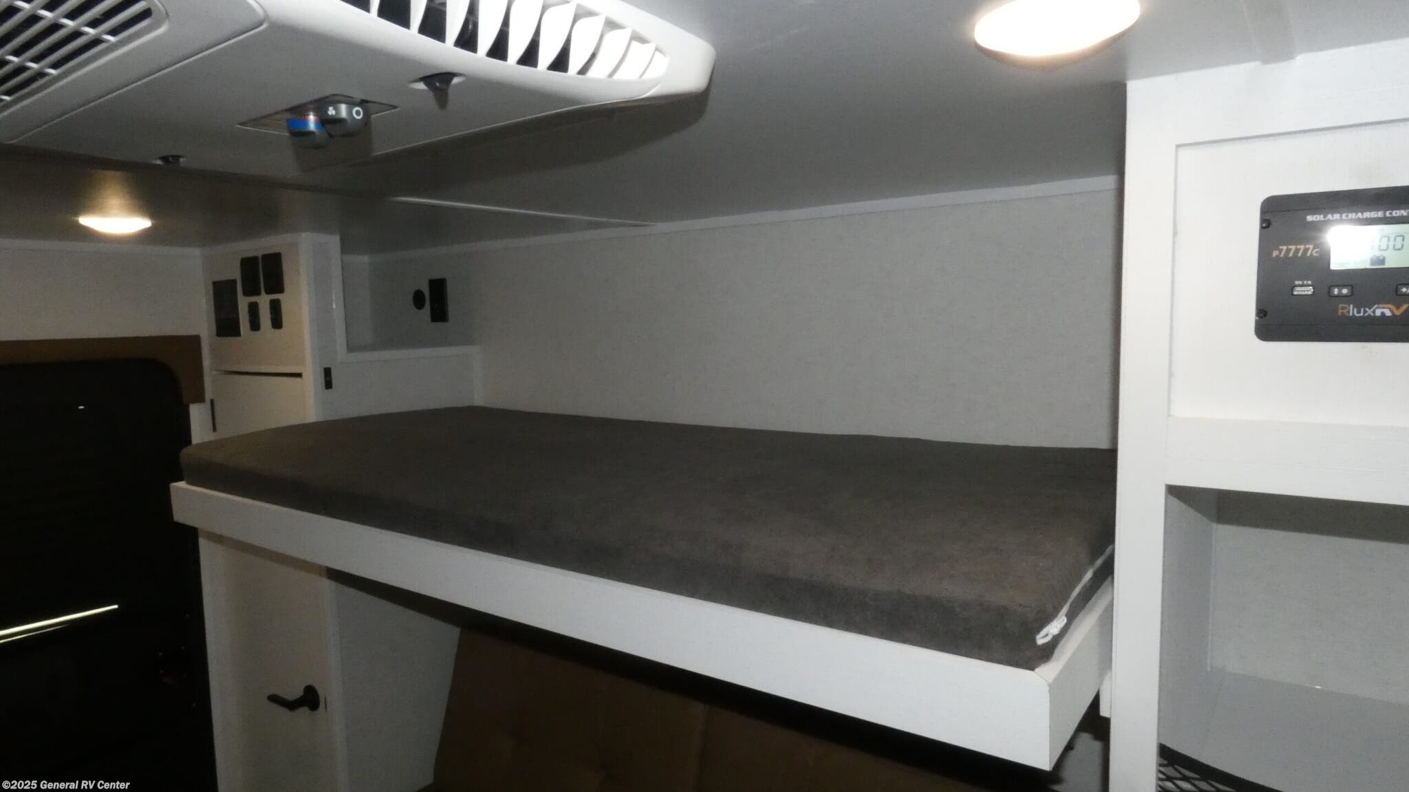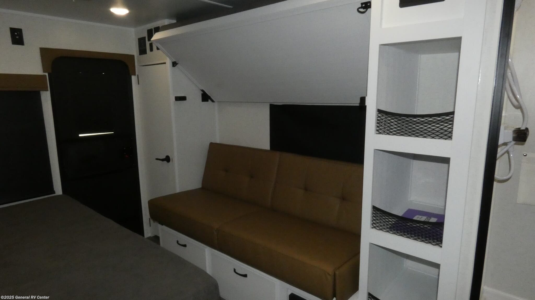 **Modern Buggy Hopper travel trailer Hopper 1 highlights:** * 45" x 74" Bed * Wet Bath * Rear Entry Door * Two Storage Pantries * Removable Bar Table You'll love time at the campground in this lightweight travel trailer! Everything you need for an enjoyable experience has been provided, such as a functional kitchen with a two-burner stove and 12V refrigerator to cook and store food, plus a convenient wet bath so you can freshen up each day! A 68" jack knife sofa with a 68" x 31" bed/bunk above will provide sleeping space for guests, while you take the 45" x 74" bed. There are overhead cabinets for your things, along with two pantries for dry goods, snacks and more! Make every outdoor adventure count with a Hopper travel trailer or toy hauler travel trailer by Modern Buggy RV! These lightweight units are built to last with a custom steel frame and Azdel walls for added durability. You'll find all the necessities needed inside, such as a 13.5k BTU A/C, a 19k BTU furnace, and a Fogatti on-demand water heater for hot showers after trail riding or hiking. The Hopper is off-road capable with all-terrain tires, electric brakes, and 14" ground clearance. You will also enjoy the black roller shades inside, along with White Sands cabinetry and USB stations to keep your gadgets charged and ready to go!