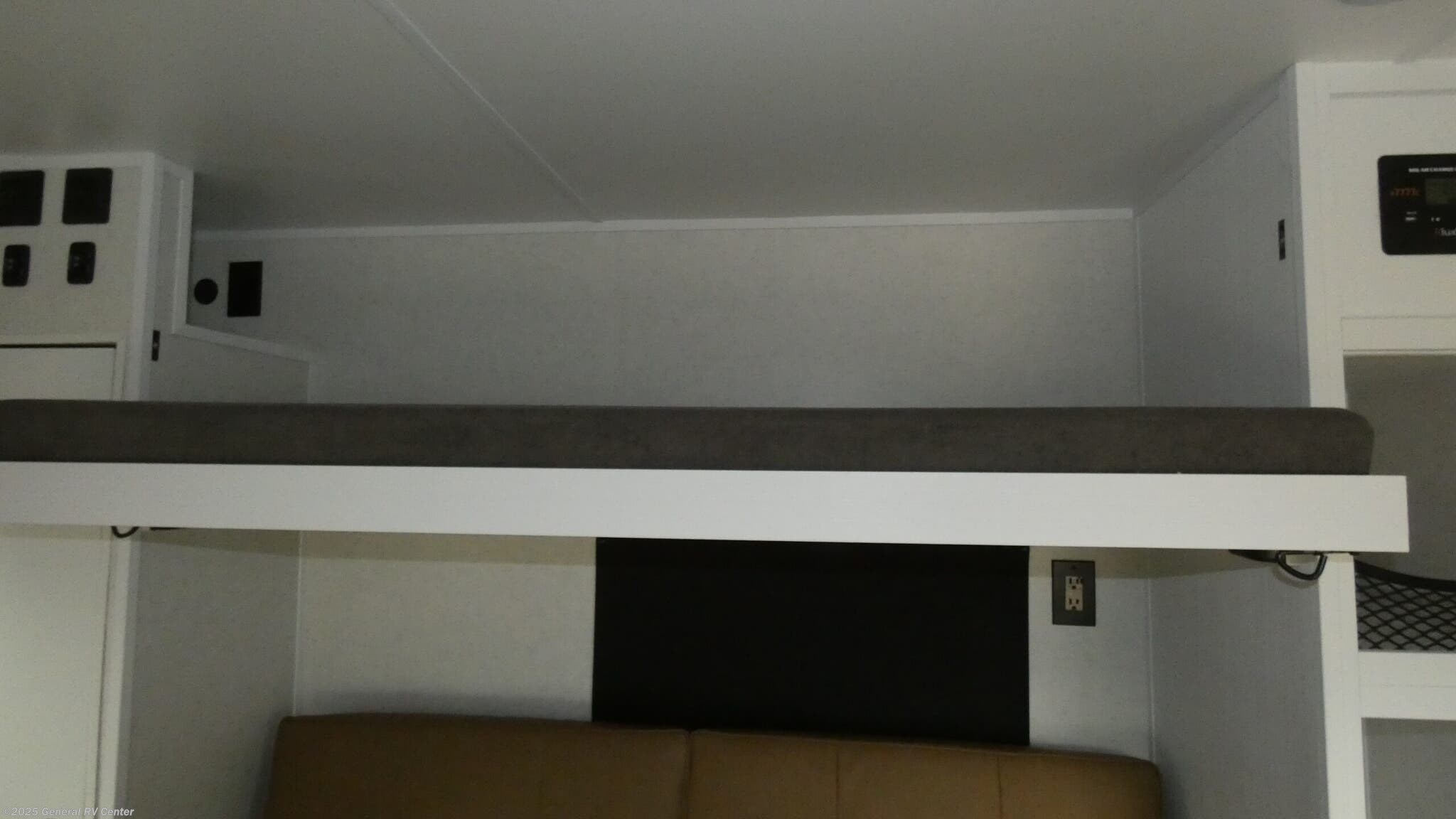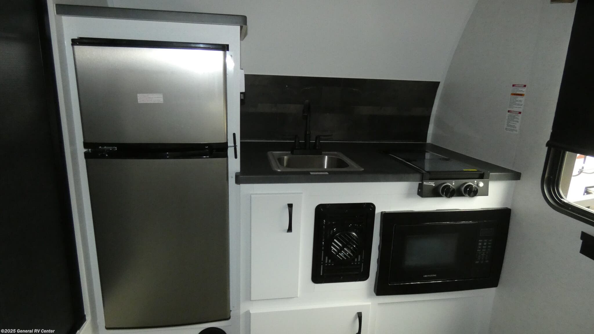 Modern Buggy Hopper travel trailer Hopper 1 highlights: 45" x 74" Bed Wet Bath Rear Entry Door Two Storage Pantries Removable Bar Table You'll love time at the campground in this lightweight travel trailer! Everything you need for an enjoyable experience has been provided, such as a functional kitchen with a two-burner stove and 12V refrigerator to cook and store food, plus a convenient wet bath so you can freshen up each day! A 68" jack knife sofa with a 68" x 31" bed/bunk above will provide sleeping space for guests, while you take the 45" x 74" bed. There are overhead cabinets for your things, along with two pantries for dry goods, snacks and more! Make every outdoor adventure count with a Hopper travel trailer or toy hauler travel trailer by Modern Buggy RV! These lightweight units are built to last with a custom steel frame and Azdel walls for added durability. You'll find all the necessities needed inside, such as a 13.5k BTU A/C, a 19k BTU furnace, and a Fogatti on-demand water heater for hot showers after trail riding or hiking. The Hopper is off-road capable with all-terrain tires, electric brakes, and 14" ground clearance. You will also enjoy the black roller shades inside, along with White Sands cabinetry and USB stations to keep your gadgets charged and ready to go!