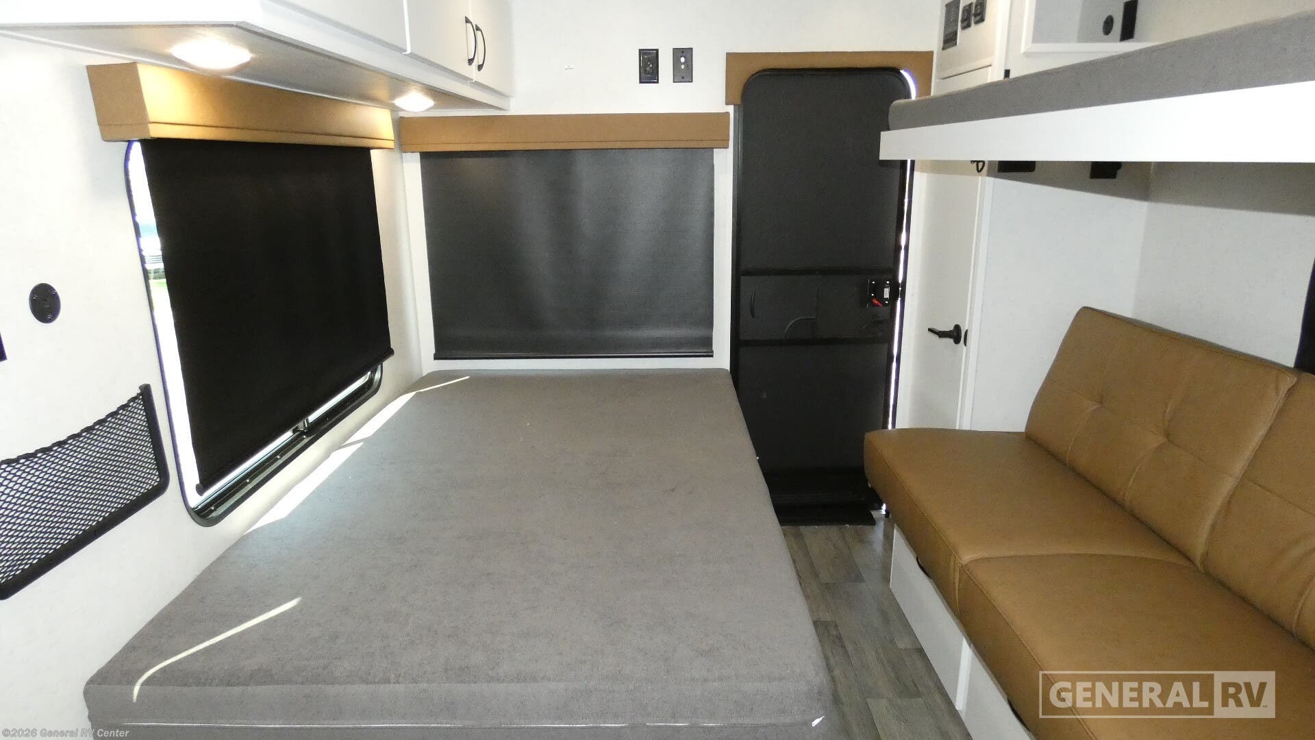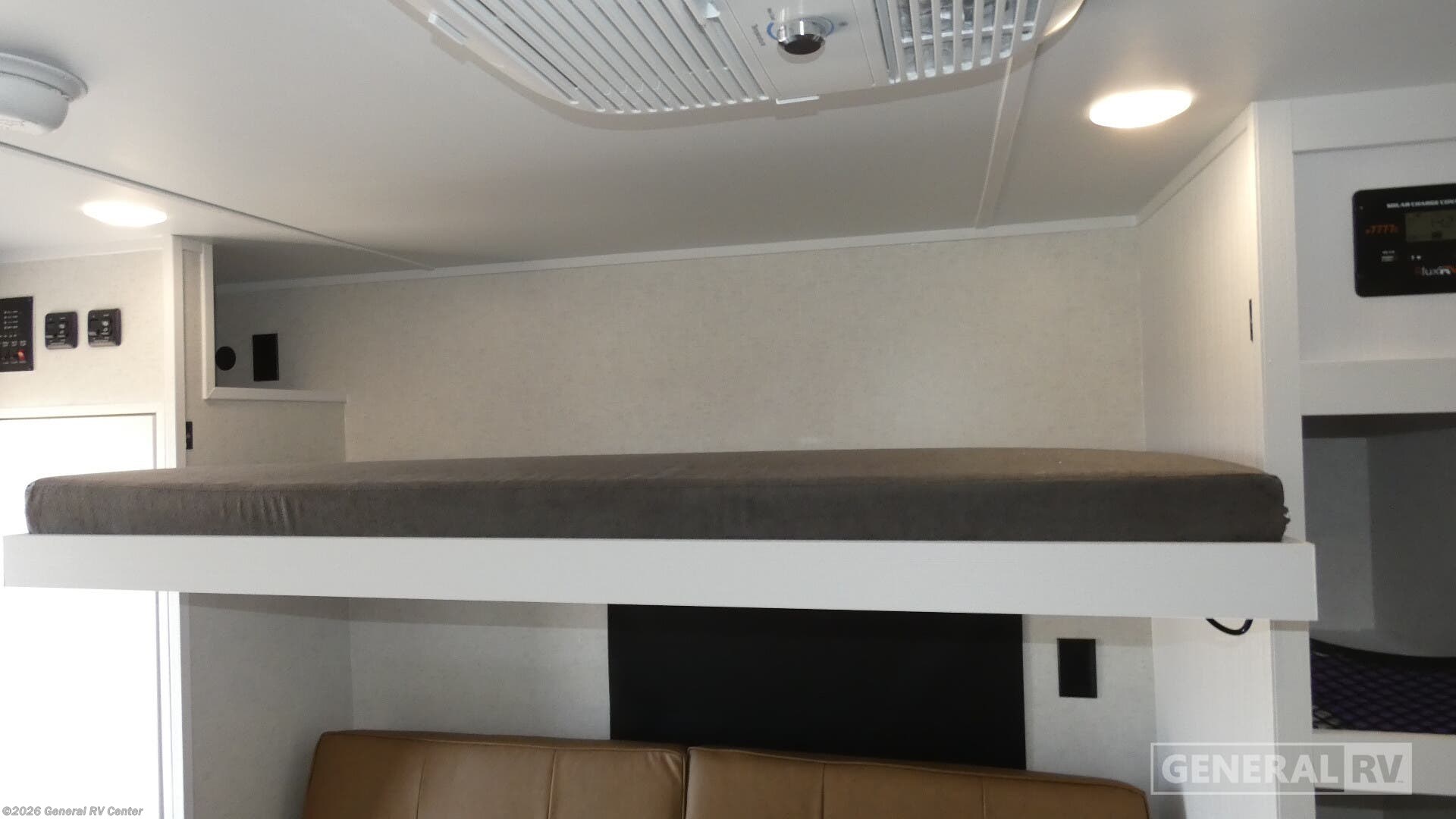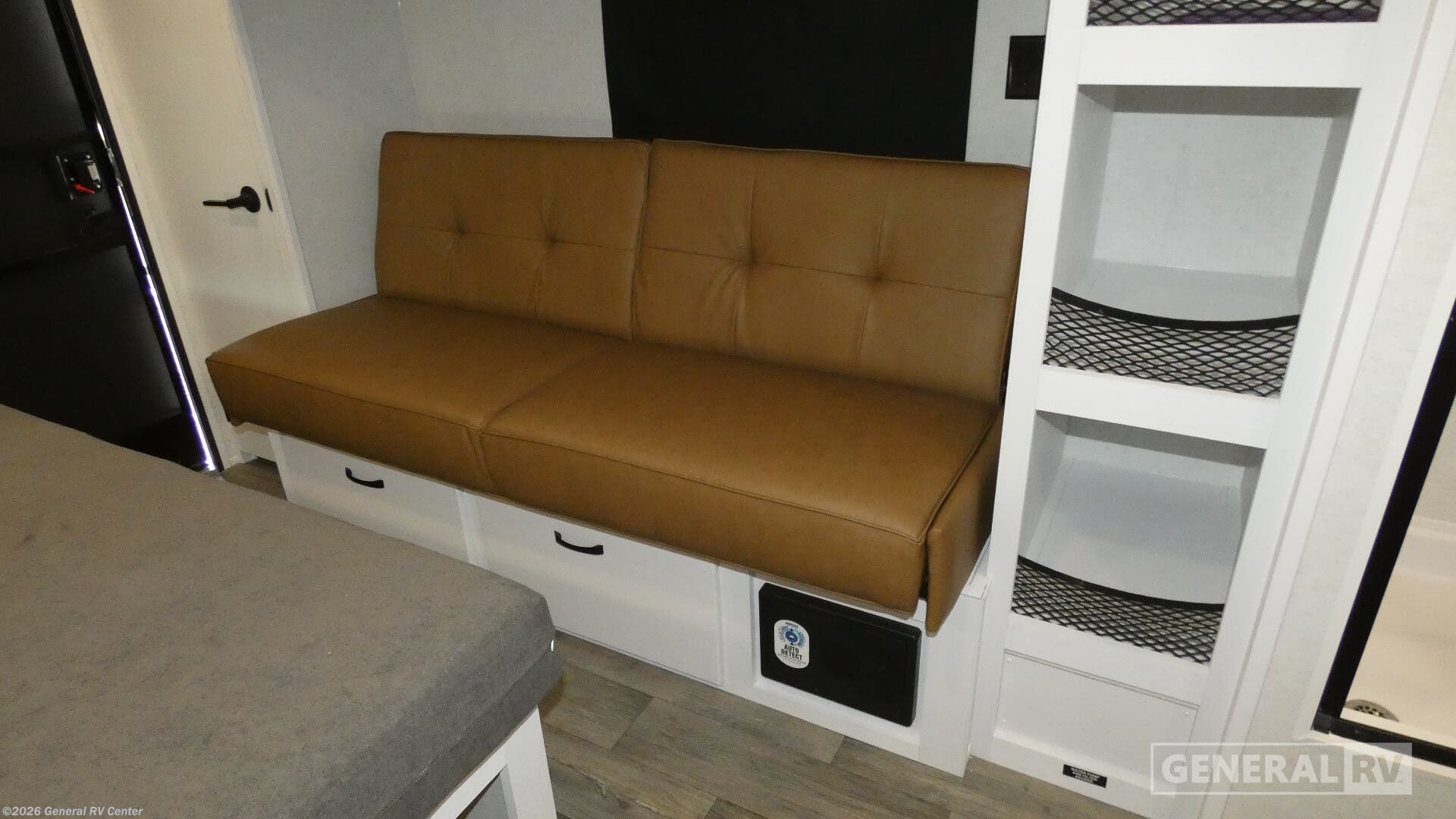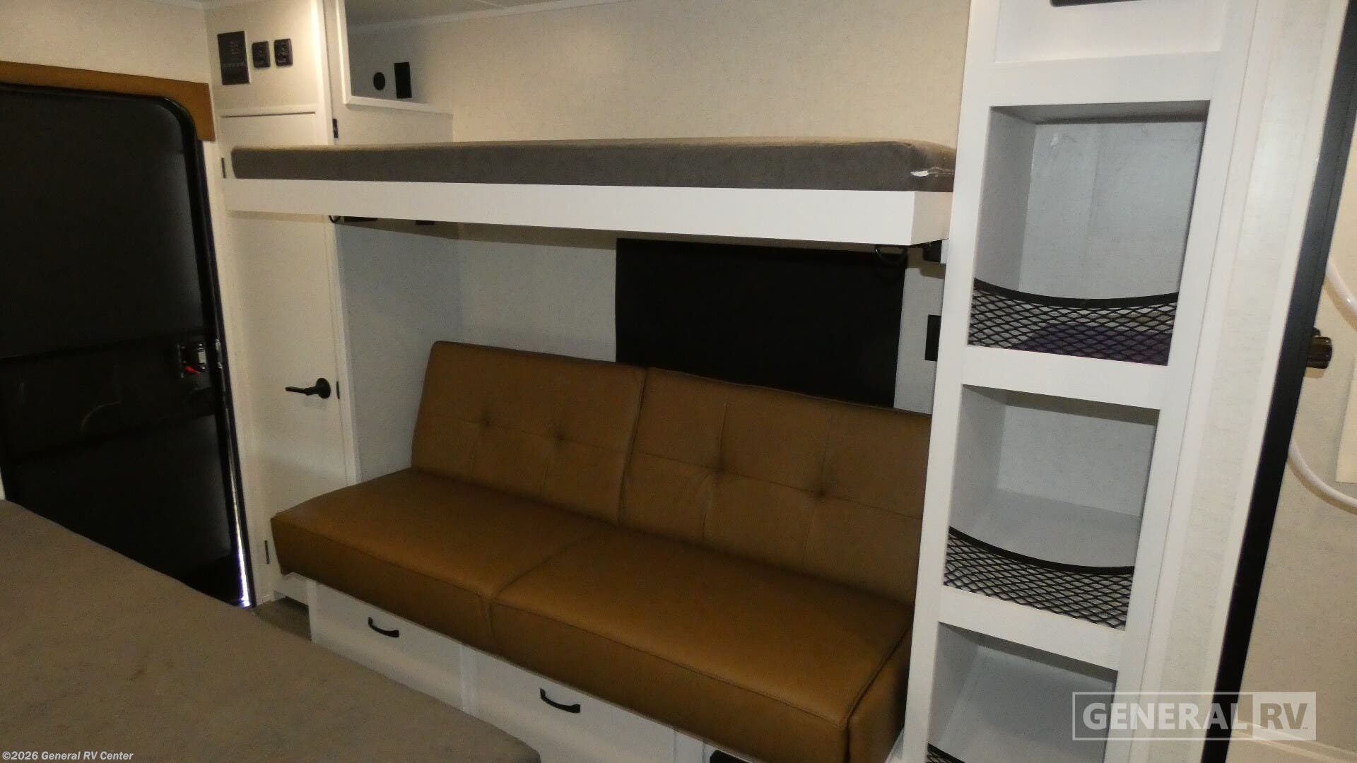 Modern Buggy Hopper travel trailer Hopper 1 highlights: 45" x 74" Bed Wet Bath Rear Entry Door Two Storage Pantries Removable Bar Table You'll love time at the campground in this lightweight travel trailer! Everything you need for an enjoyable experience has been provided, such as a functional kitchen with a two-burner stove and 12V refrigerator to cook and store food, plus a convenient wet bath so you can freshen up each day! A 68" jack knife sofa with a 68" x 31" bed/bunk above will provide sleeping space for guests, while you take the 45" x 74" bed. There are overhead cabinets for your things, along with two pantries for dry goods, snacks and more! Make every outdoor adventure count with a Hopper travel trailer or toy hauler travel trailer by Modern Buggy RV! These lightweight units are built to last with a custom steel frame and Azdel walls for added durability. You'll find all the necessities needed inside, such as a 13.5k BTU A/C, a 19k BTU furnace, and a Fogatti on-demand water heater for hot showers after trail riding or hiking. The Hopper is off-road capable with all-terrain tires, electric brakes, and 14" ground clearance. You will also enjoy the black roller shades inside, along with White Sands cabinetry and USB stations to keep your gadgets charged and ready to go!