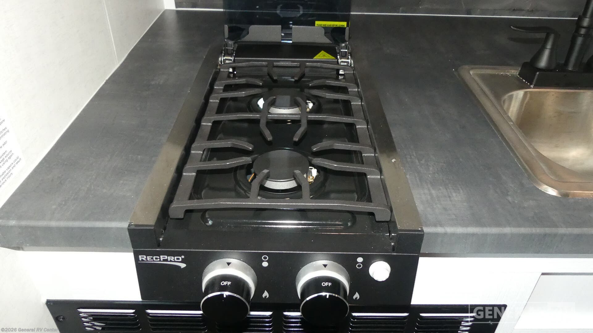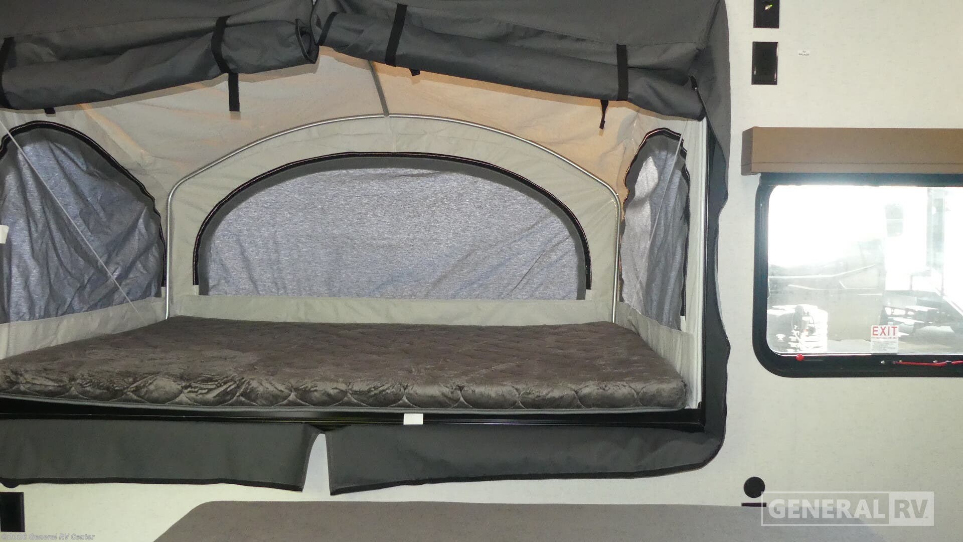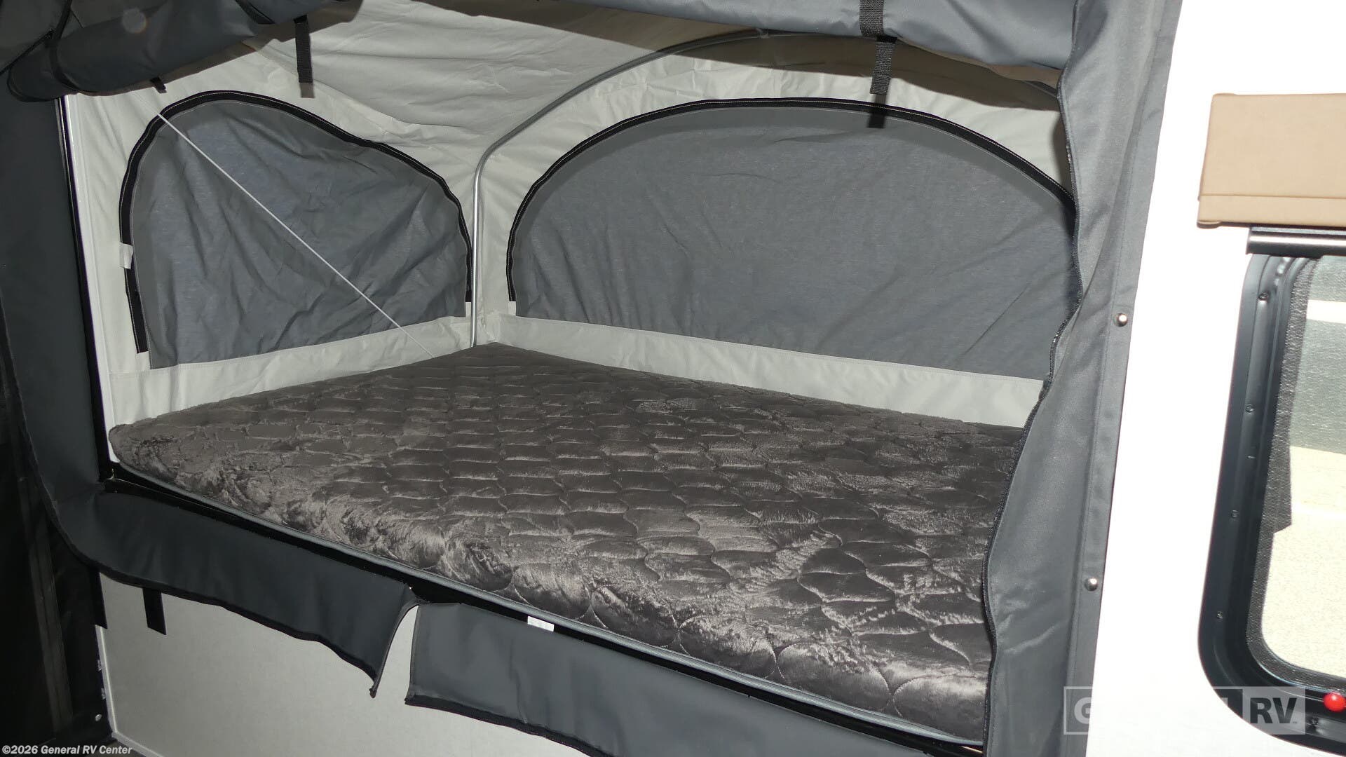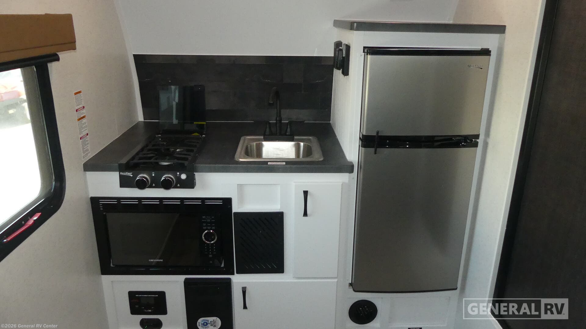 **Modern Buggy Hopper toy hauler Hopper 2 highlights:** - 88" x 74" Ramp Door - Private Dry Bath - 10' Side Awning - 81" x 46" Side Pop-Out Tent Bed Load up the kayaks or dirt bikes for fun weekends in this toy hauler! Once you've unloaded your toys using the ramp door, you can start lunch in the front corner kitchen that includes a two-burner stove, a 12V refrigerator, and a stainless-steel sink for easy clean up. Speaking of cleaning up, the bath is also up front that includes a shower and toilet. And the 50" x 74" Murphy-style bed and side pop-out tent will provide comfy sleeping spaces when you're ready to call it a night! Make every outdoor adventure count with a Hopper travel trailer or toy hauler travel trailer by Modern Buggy RV! These lightweight units are built to last with a custom steel frame and Azdel walls for added durability. You'll find all the necessities needed inside, such as a 13.5k BTU A/C, a 19k BTU furnace, and a Fogatti on-demand water heater for hot showers after trail riding or hiking. The Hopper is off-road capable with all-terrain tires, electric brakes, and 14" ground clearance. You will also enjoy the black roller shades inside, along with White Sands cabinetry and USB stations to keep your gadgets charged and ready to go!