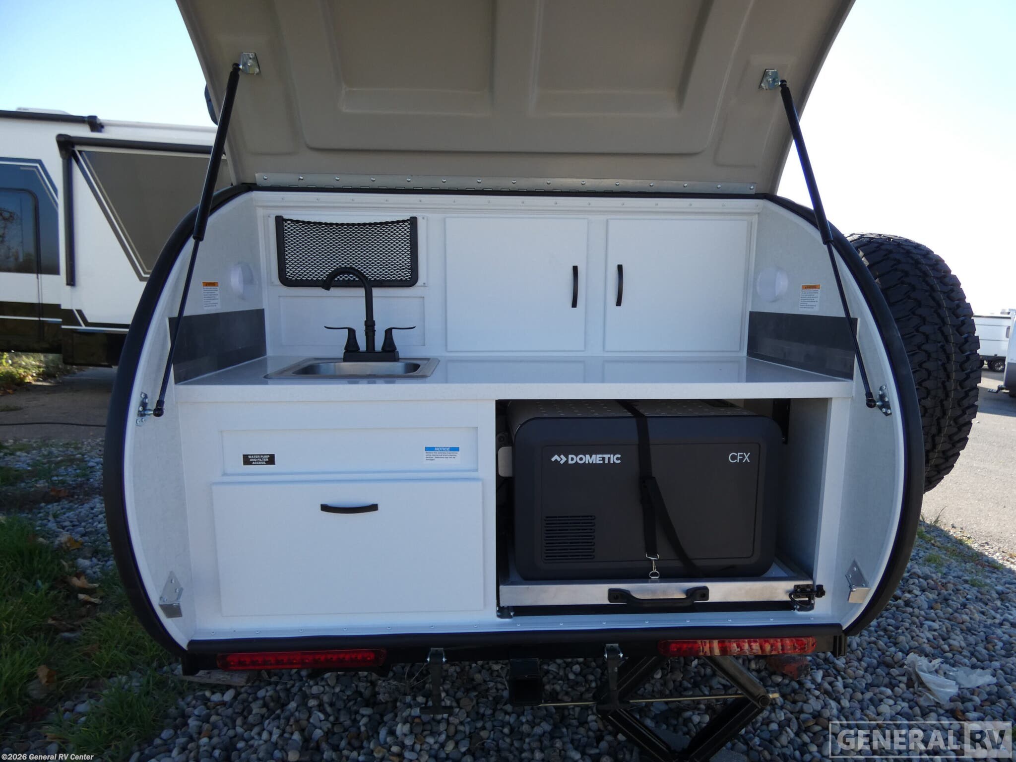 Modern Buggy RV Little Buggy teardrop trailer 10RK highlights: Dual Entry Outside Galley Memory Foam Mattress Heavy Duty Roof Rack 14" Ground Clearance Whether you have a car, small SUV or a larger vehicle, you will be able to tow this Little Buggy off-road and to a local campground, the choices is yours! There is sleeping space for two adults on a memory foam mattress, and storage for your necessities with overhead cabinets inside. More storage can be found in the front exterior box for either your clothing, dry food or gear. The roof rack allows you to add an optional rooftop tent, and/or carry your paddle boards, bikes or more camping gear. And the outside galley gives you a place to make meals, place your cooler on the lock-in/lock-out cooler/freezer, and store dishes in the enclosed cabinets, and kitchen cabinets. With the Little Buggy teardrop trailer by Modern Buggy RV, you will have all-terrain tires with 14" ground clearance allowing you to venture on bumpy, muddy and off-the-beaten path roads. Full of modern amenities including LED lights, outlets, and USB charging stations, it won't be hard to find comfort. They are built on an industrial strength, custom aluminum frame, and are put together with AZDEL walls and a custom aluminum luggage rack with 600 lbs. of support. Get out and explore today with the Little Buggy that's meant to climb on and carry all of your gear for any adventure you dream, and it can be towed behind a car!