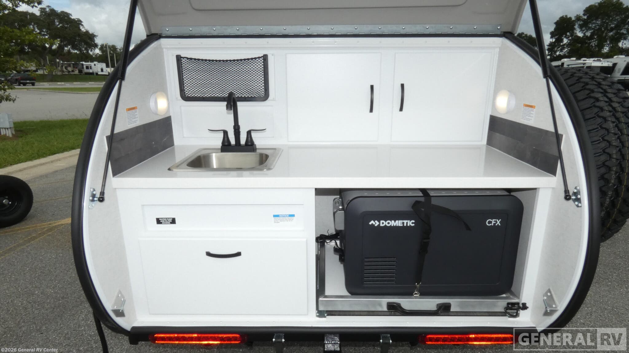 Modern Buggy RV Little Buggy teardrop trailer 10RK highlights: Dual Entry Outside Galley Memory Foam Mattress Heavy Duty Roof Rack 14" Ground Clearance Whether you have a car, small SUV or a larger vehicle, you will be able to tow this Little Buggy off-road and to a local campground, the choices is yours! There is sleeping space for two adults on a memory foam mattress, and storage for your necessities with overhead cabinets inside. More storage can be found in the front exterior box for either your clothing, dry food or gear. The roof rack allows you to add an optional rooftop tent, and/or carry your paddle boards, bikes or more camping gear. And the outside galley gives you a place to make meals, place your cooler on the lock-in/lock-out cooler/freezer, and store dishes in the enclosed cabinets, and kitchen cabinets. With the Little Buggy teardrop trailer by Modern Buggy RV, you will have all-terrain tires with 14" ground clearance allowing you to venture on bumpy, muddy and off-the-beaten path roads. Full of modern amenities including LED lights, outlets, and USB charging stations, it won't be hard to find comfort. They are built on an industrial strength, custom aluminum frame, and are put together with AZDEL walls and a custom aluminum luggage rack with 600 lbs. of support. Get out and explore today with the Little Buggy that's meant to climb on and carry all of your gear for any adventure you dream, and it can be towed behind a car!